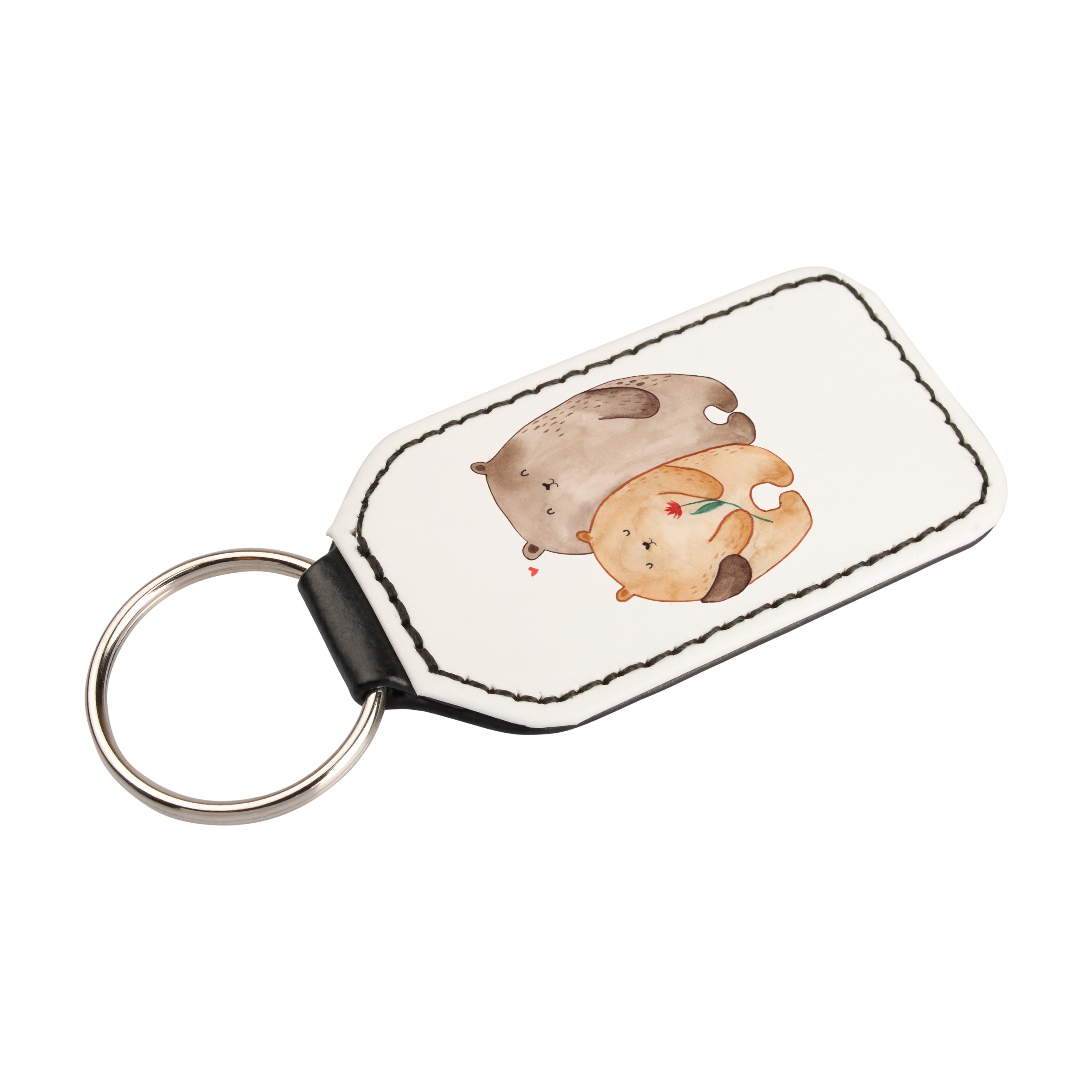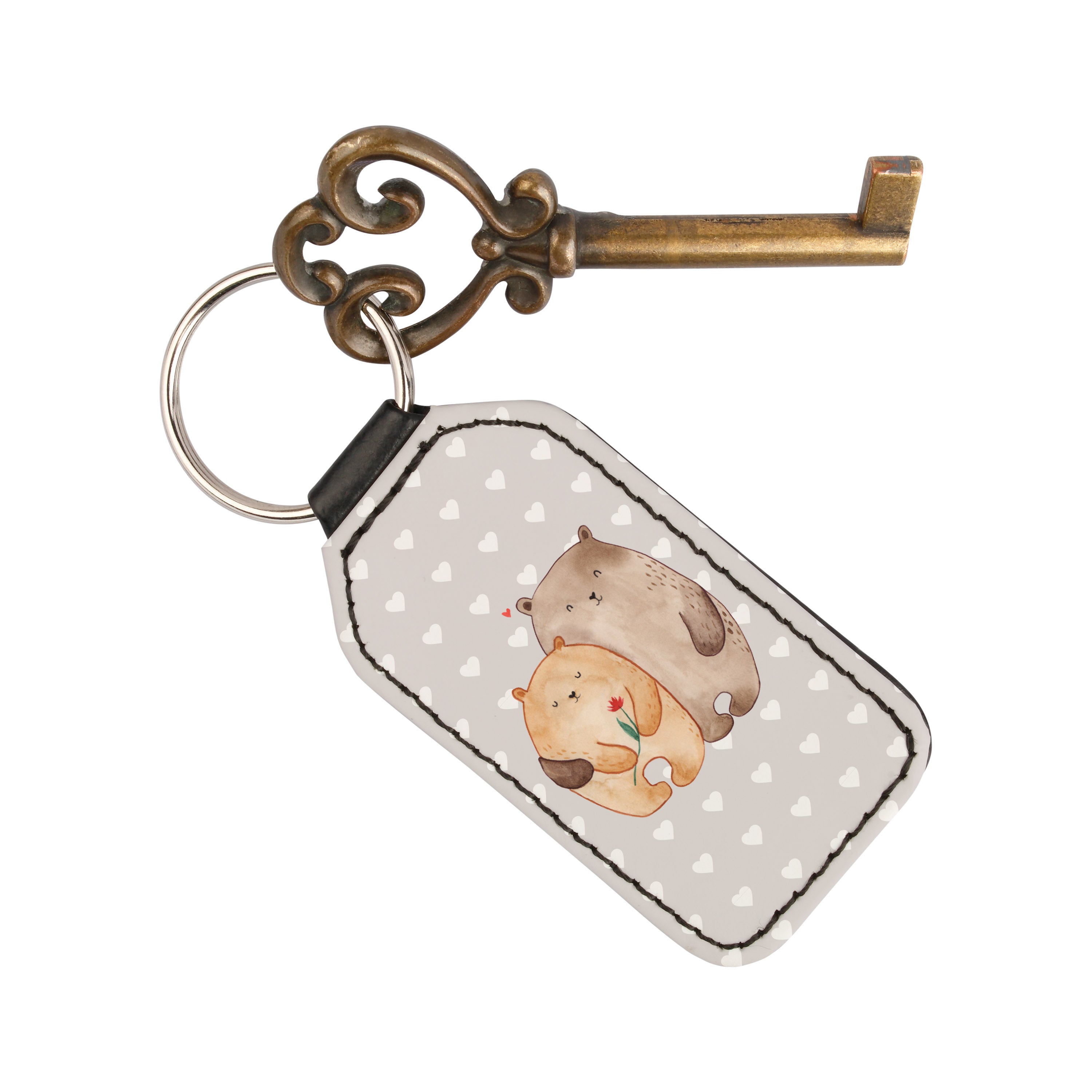 Rechteckig Schlüsselanhänger Bären Liebe - Grau Pastell