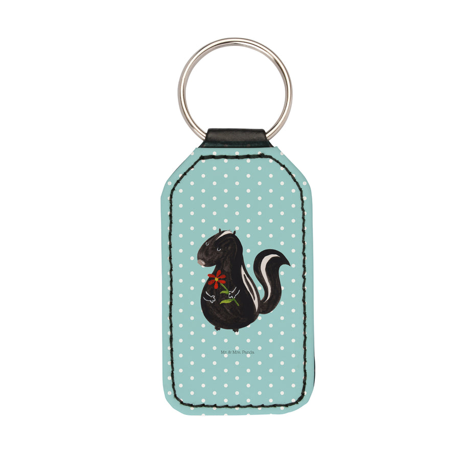 Rechteckig Schlüsselanhänger Stinktier Blume - Türkis Pastell