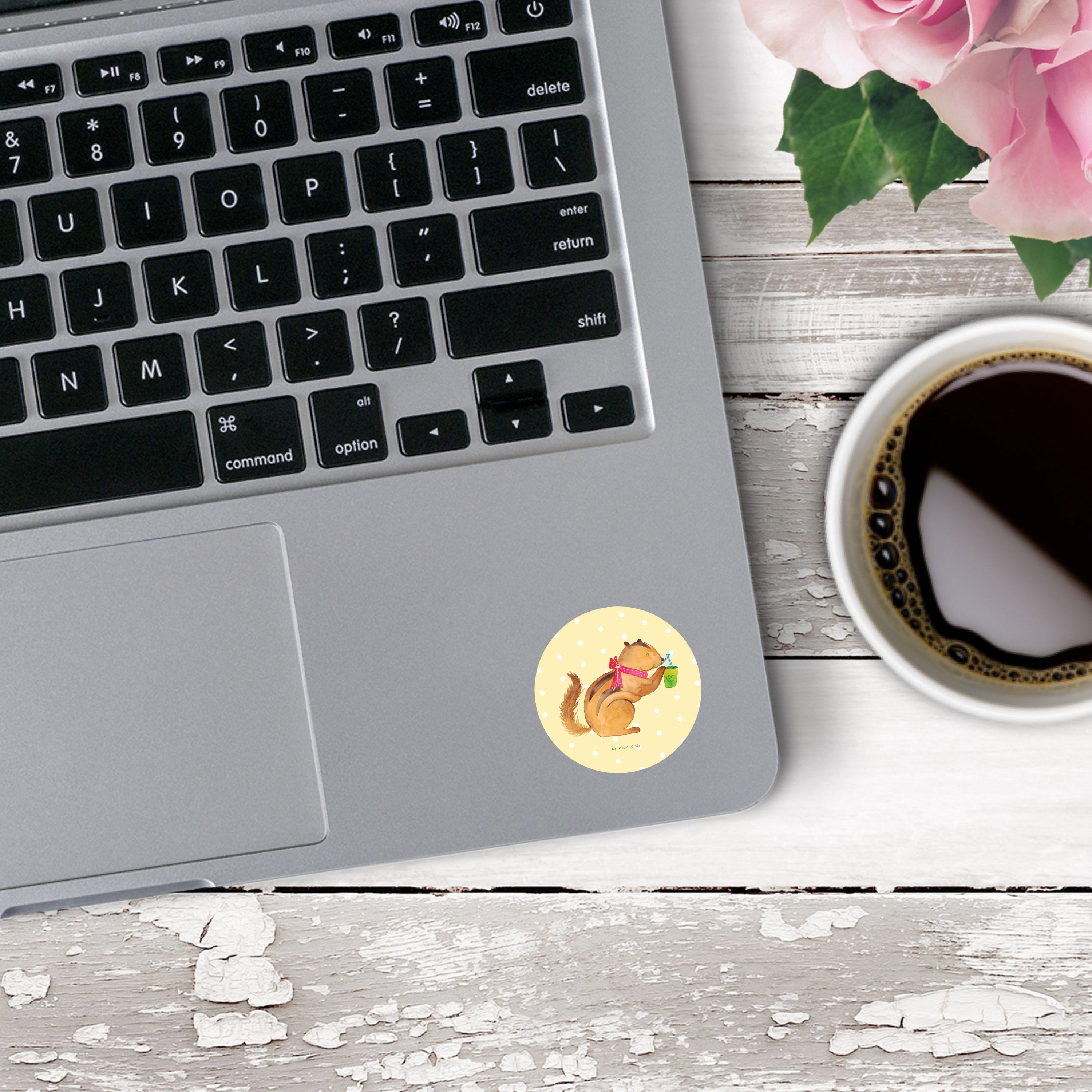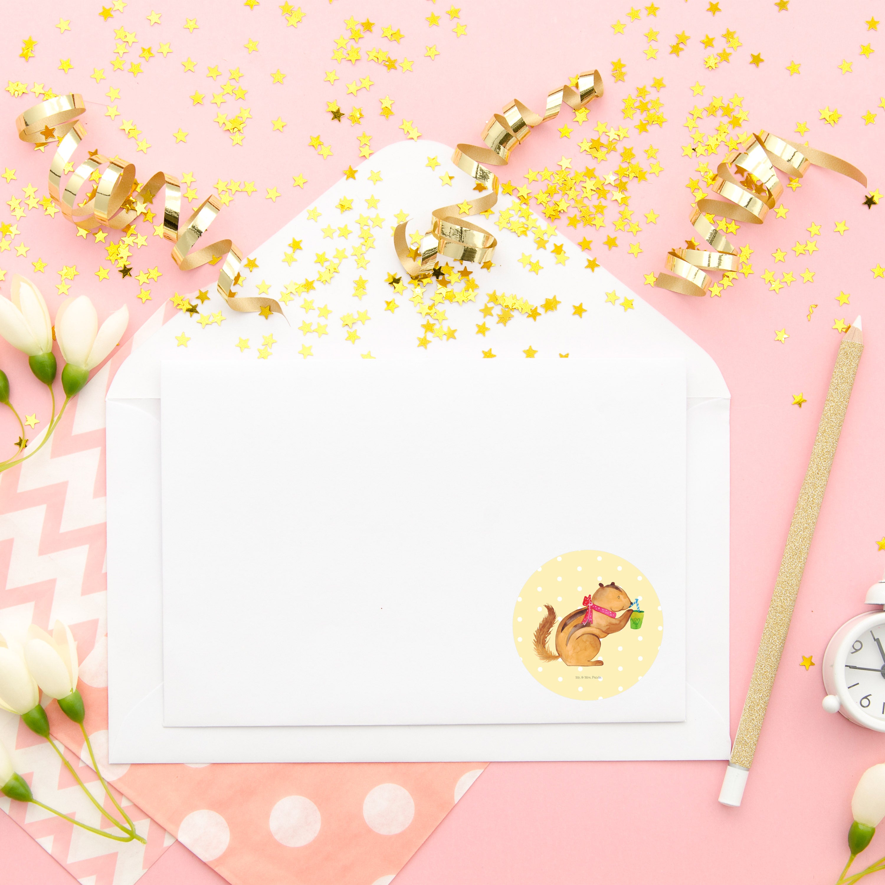 40mm Rund Aufkleber Eichhörnchen Smoothie - mit Spruch - Gelb Pastell
