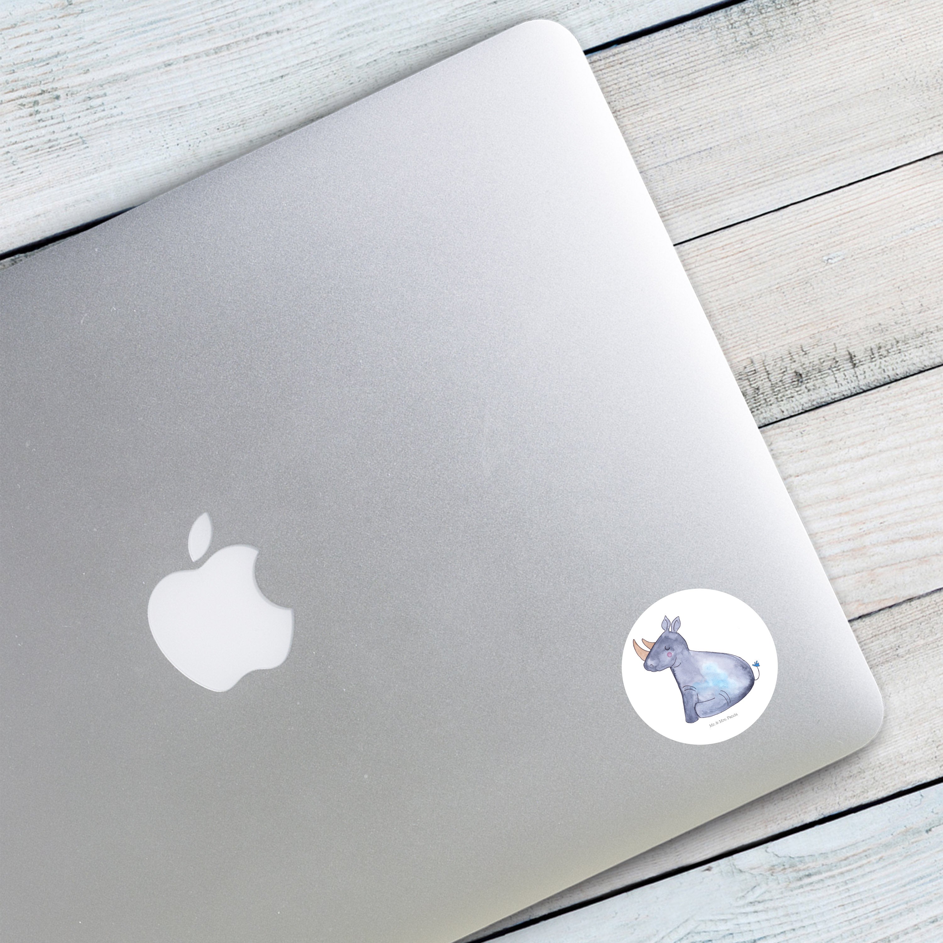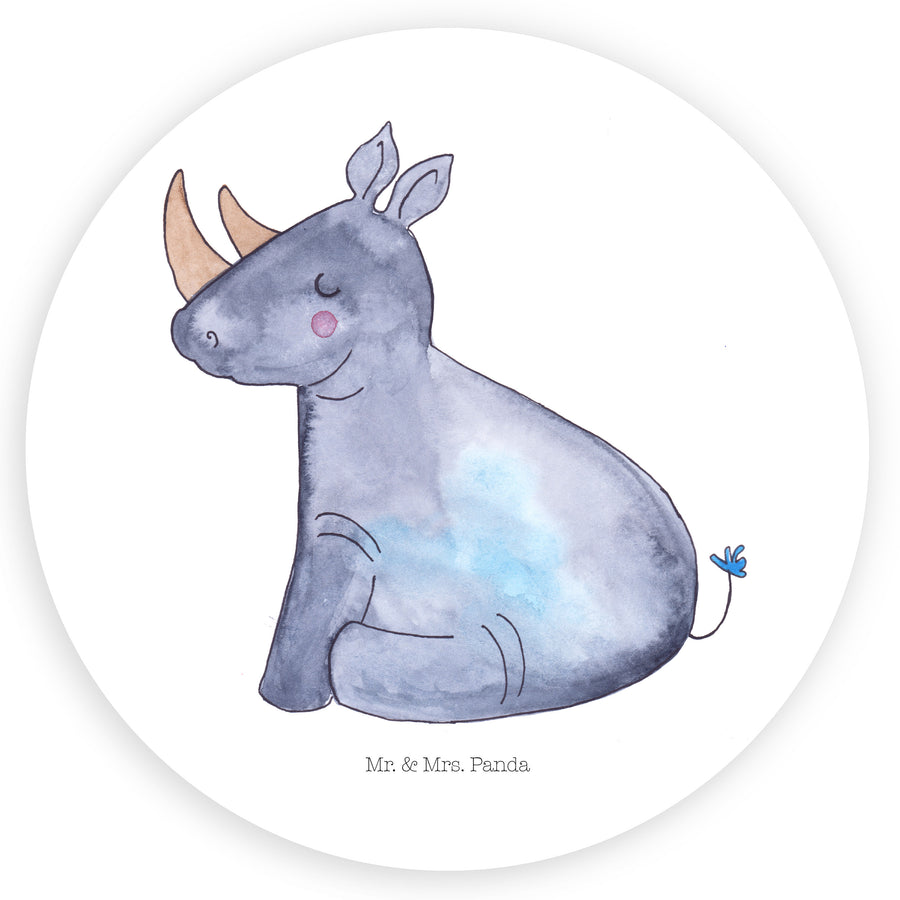 Das glückliche Nashorn zeigt: Einhörner sind gar nicht so selten. Sie sind eben nur ein bisschen dicker. Das perfekte Motiv, um ein Schmunzeln zu erzwingen.