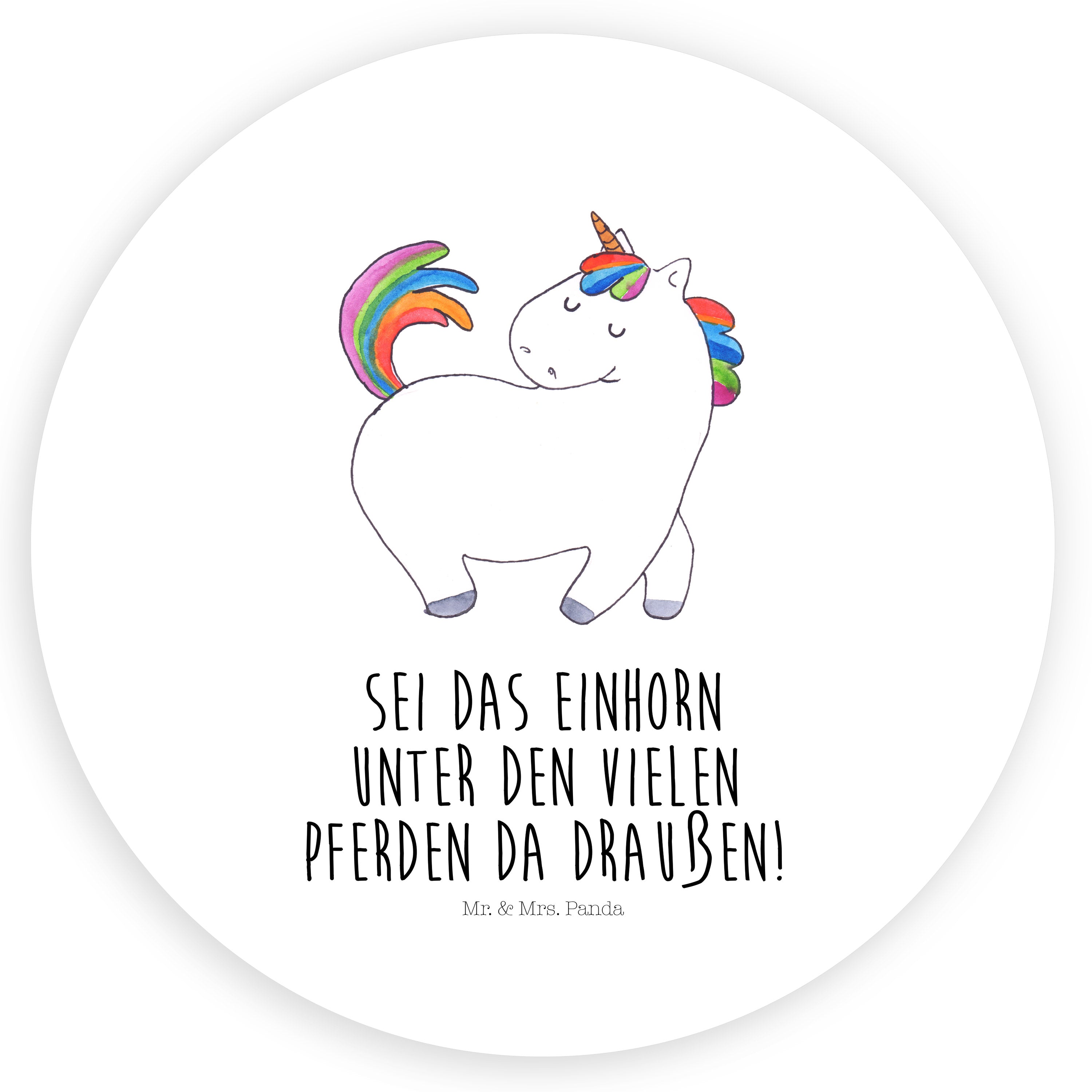 40mm Rund Aufkleber Einhorn stolzierend - mit Spruch