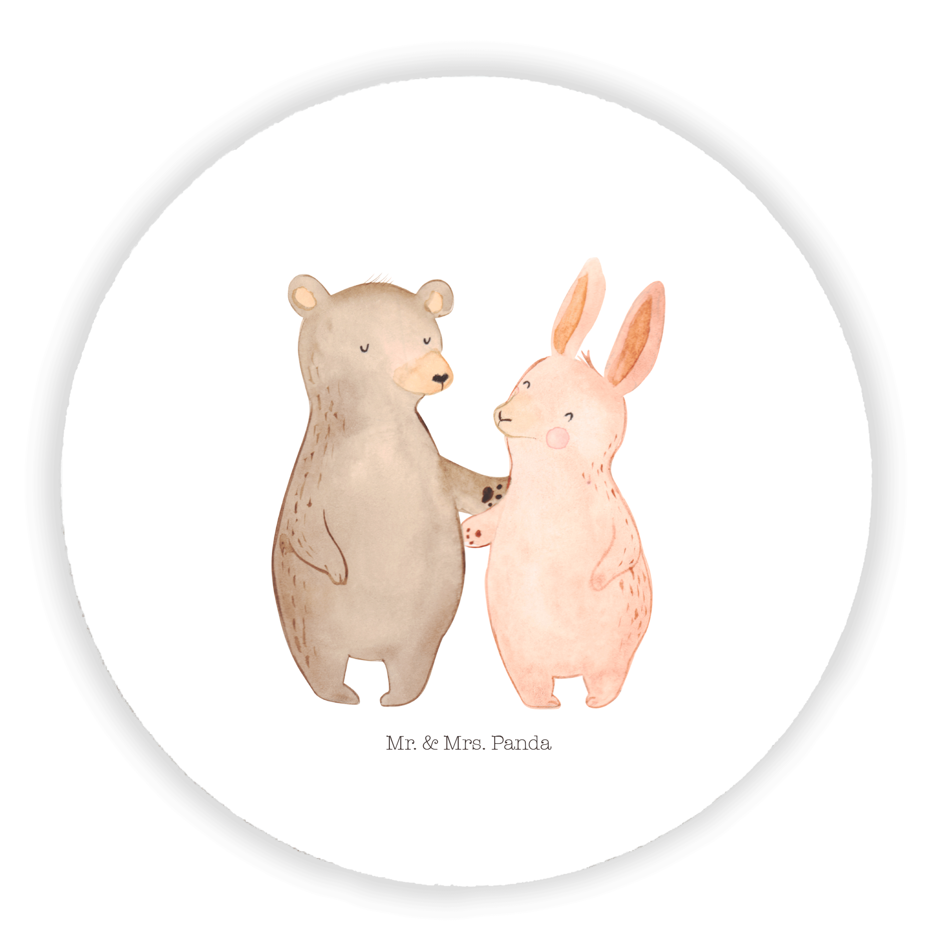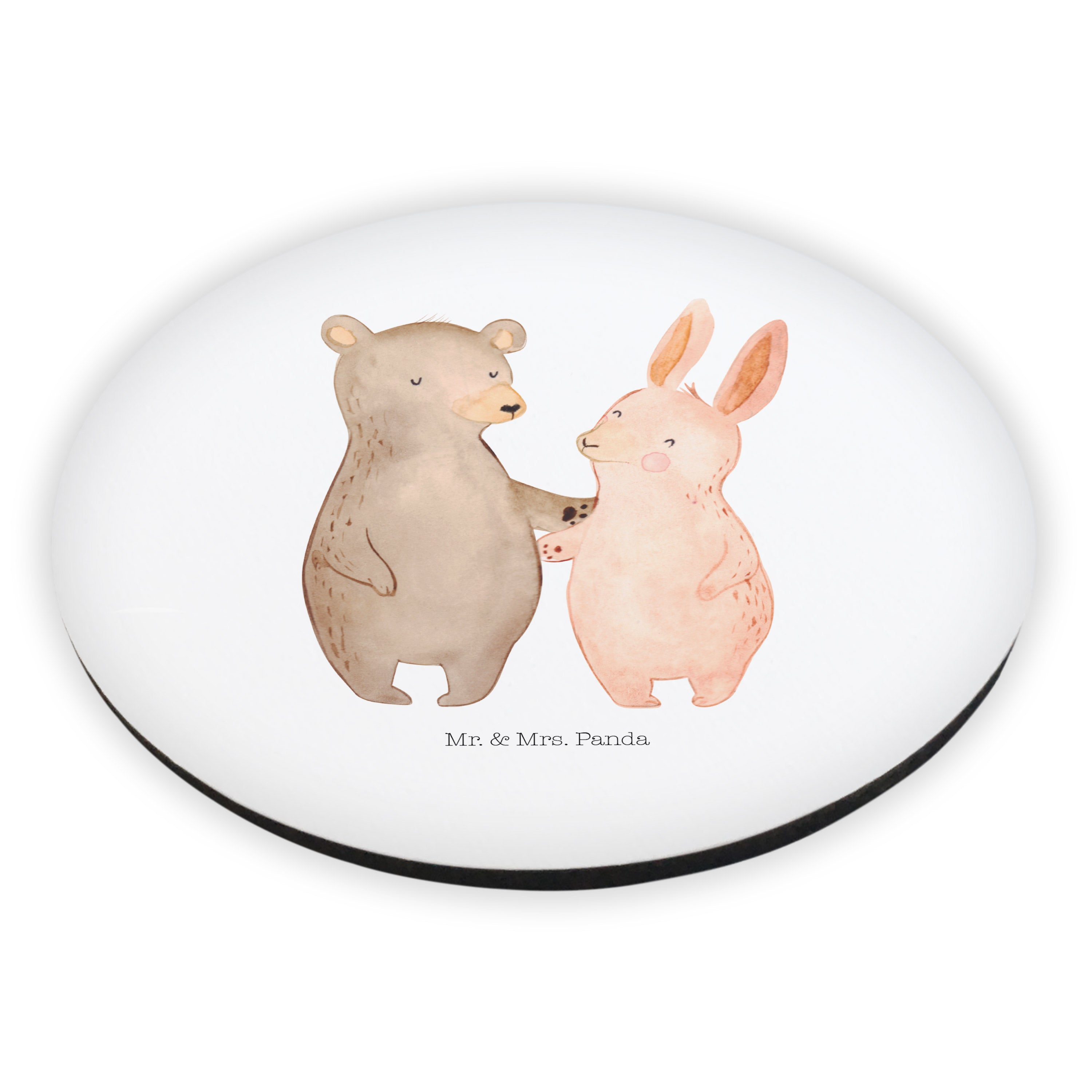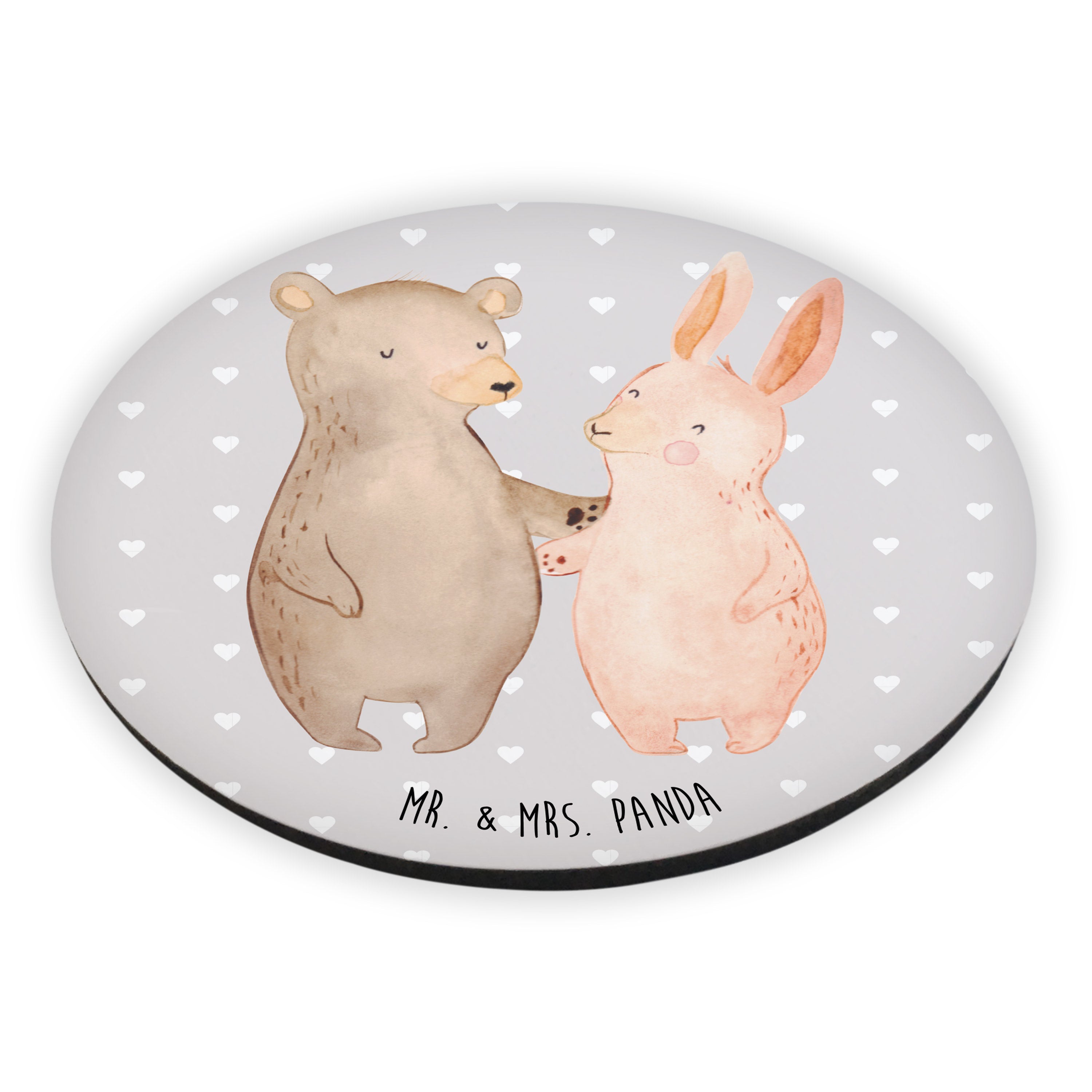 Rund Magnet Bär Hase Umarmen - mit Spruch - Grau Pastell