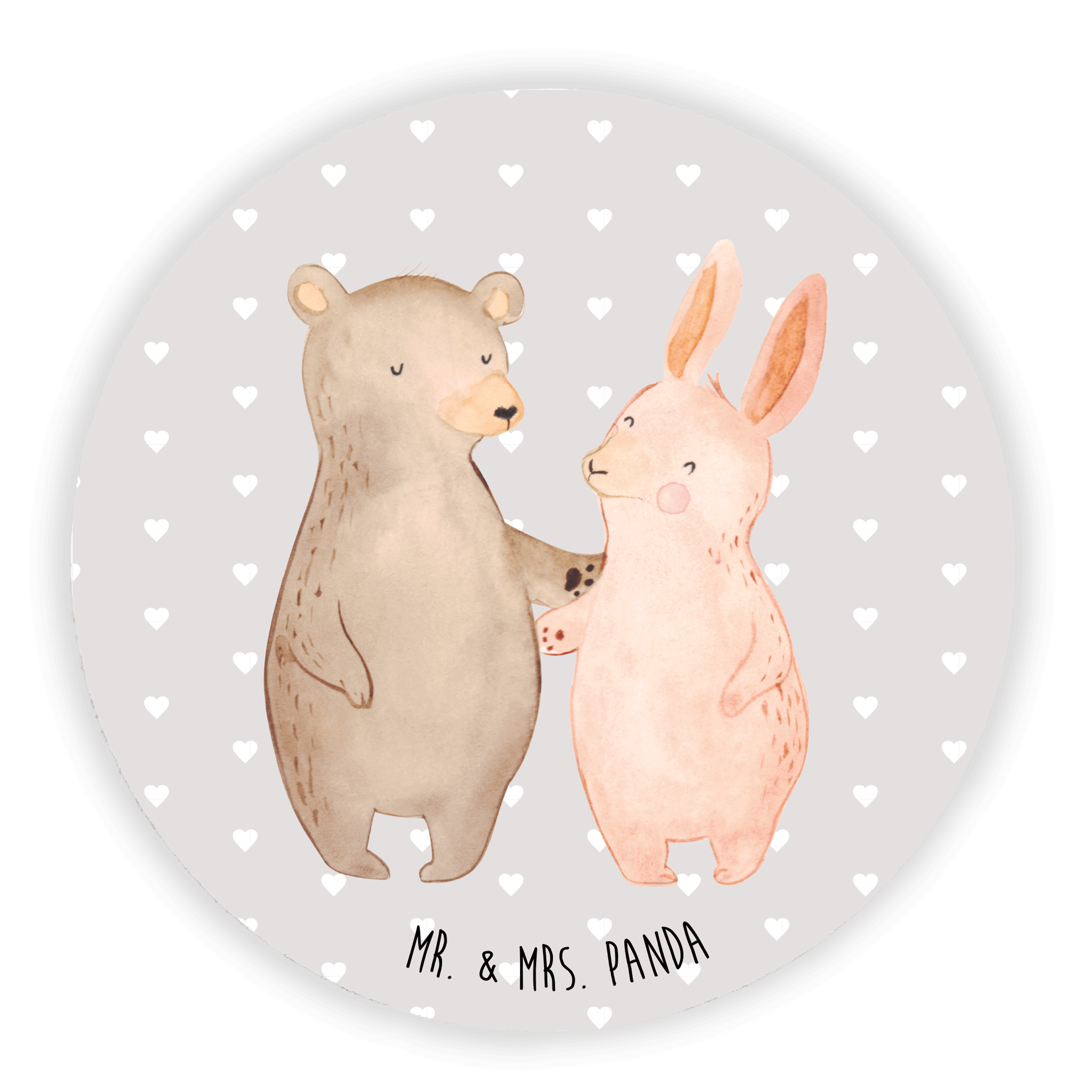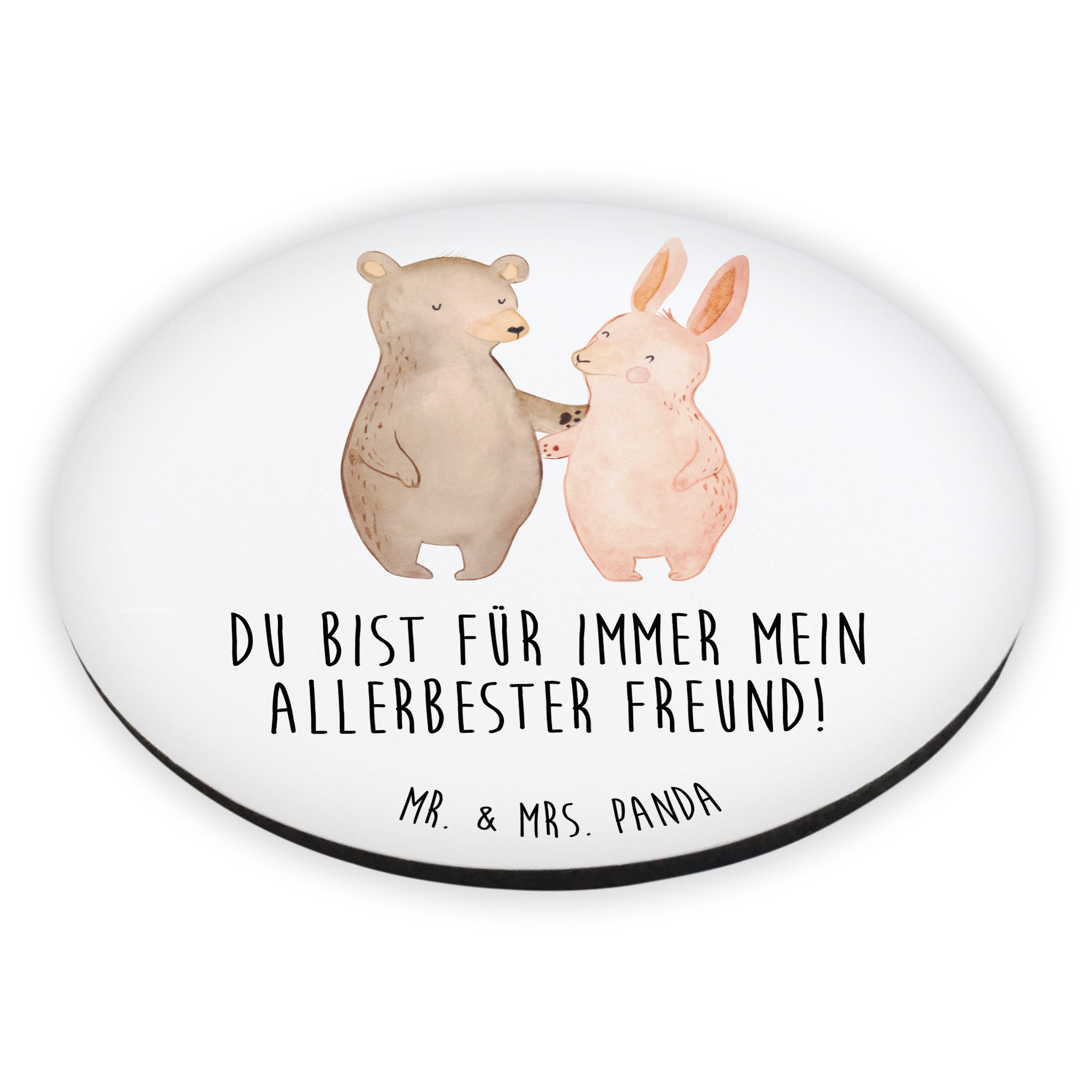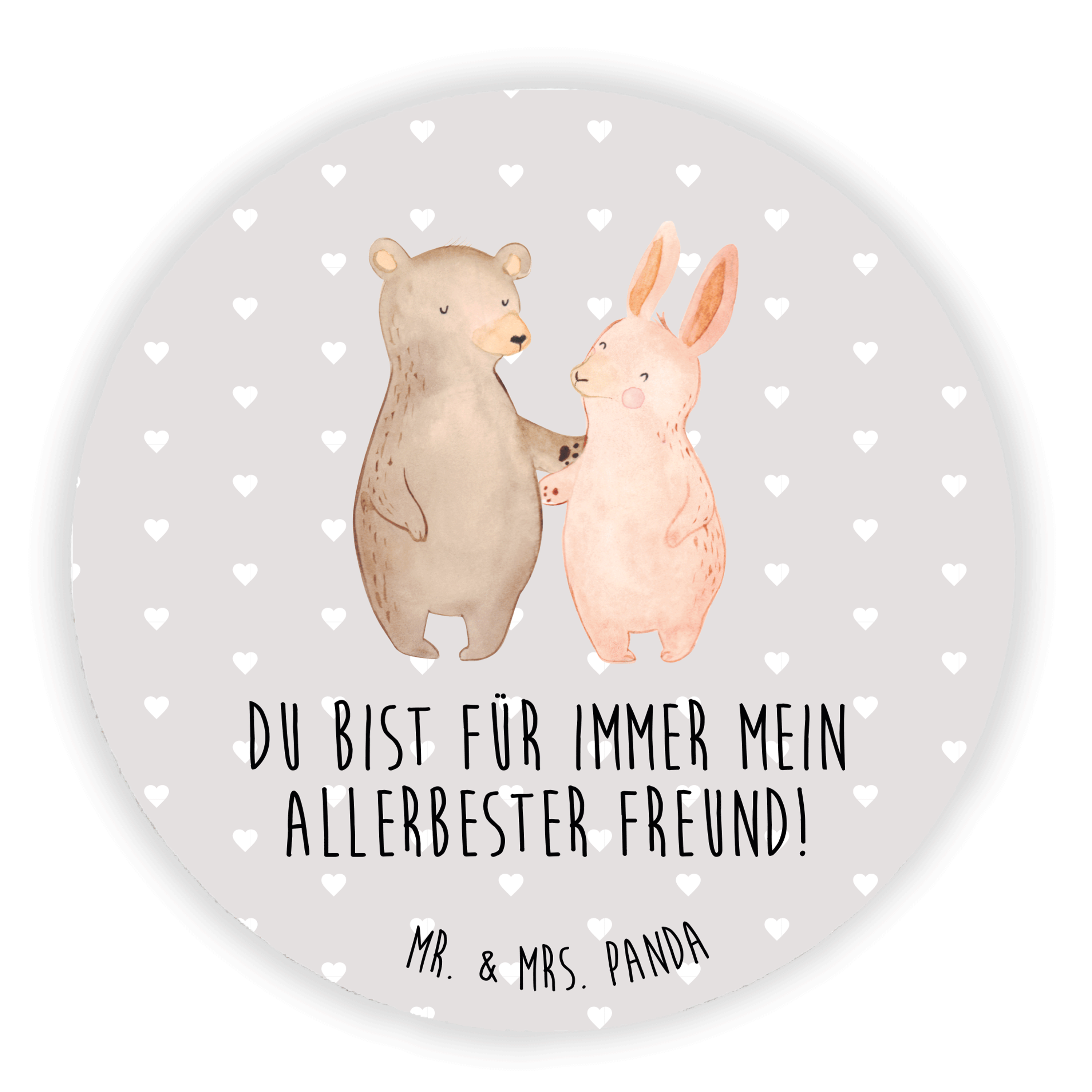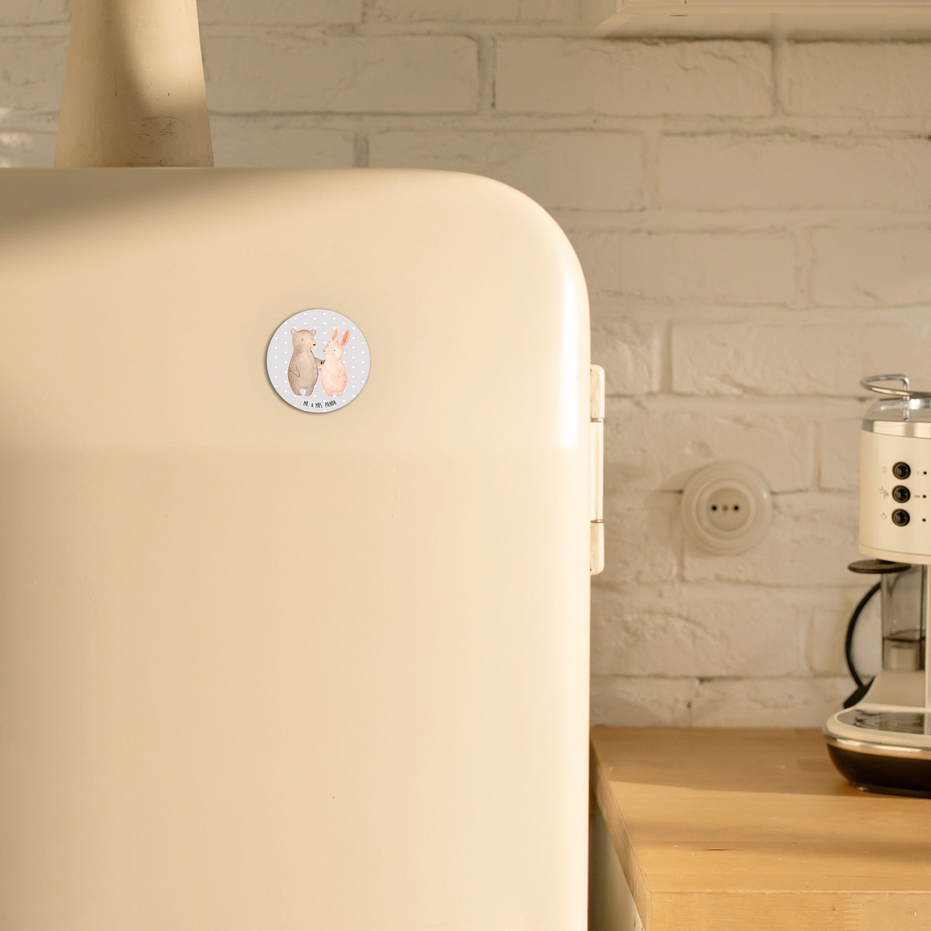 Rund Magnet Bär Hase Umarmen - mit Spruch - Grau Pastell
