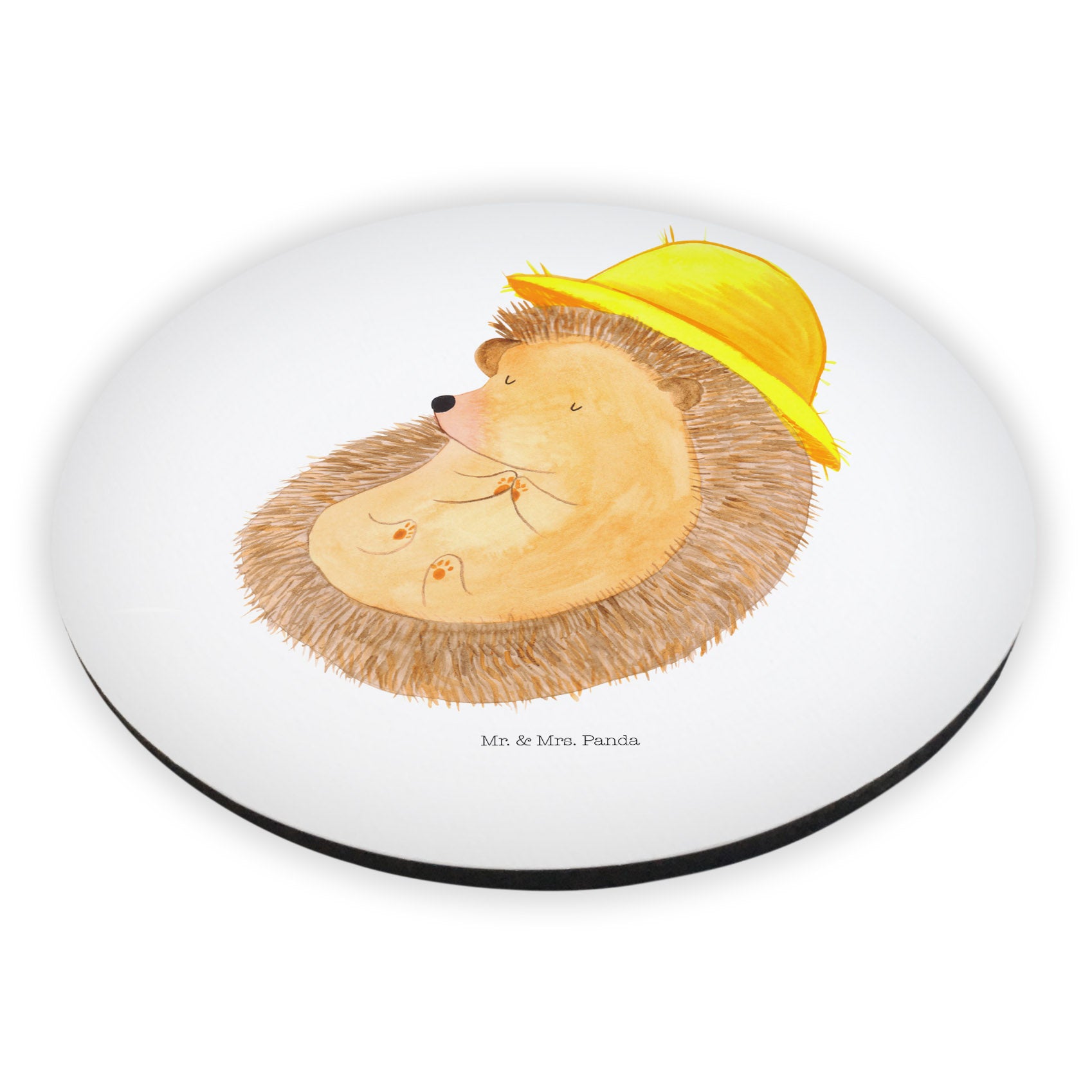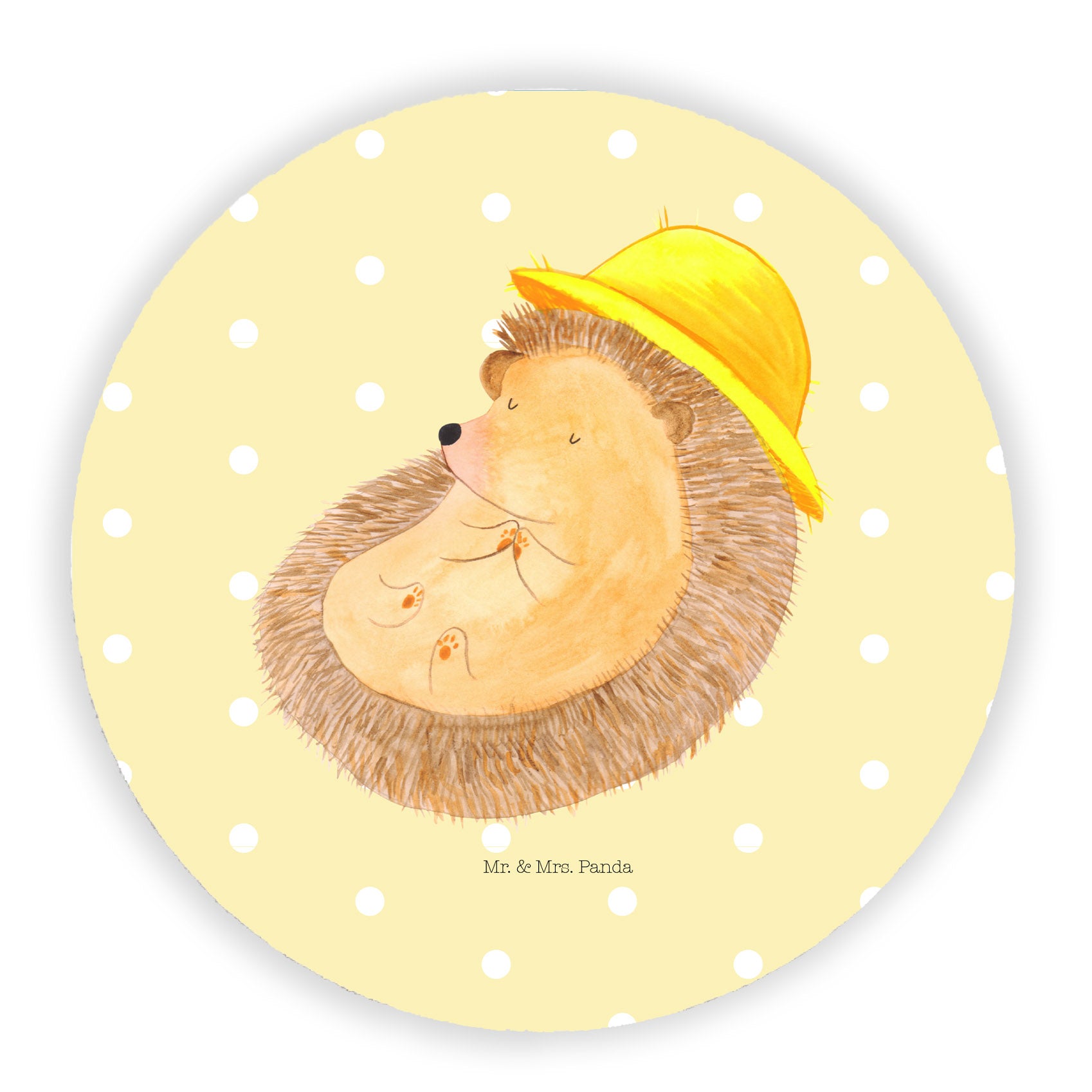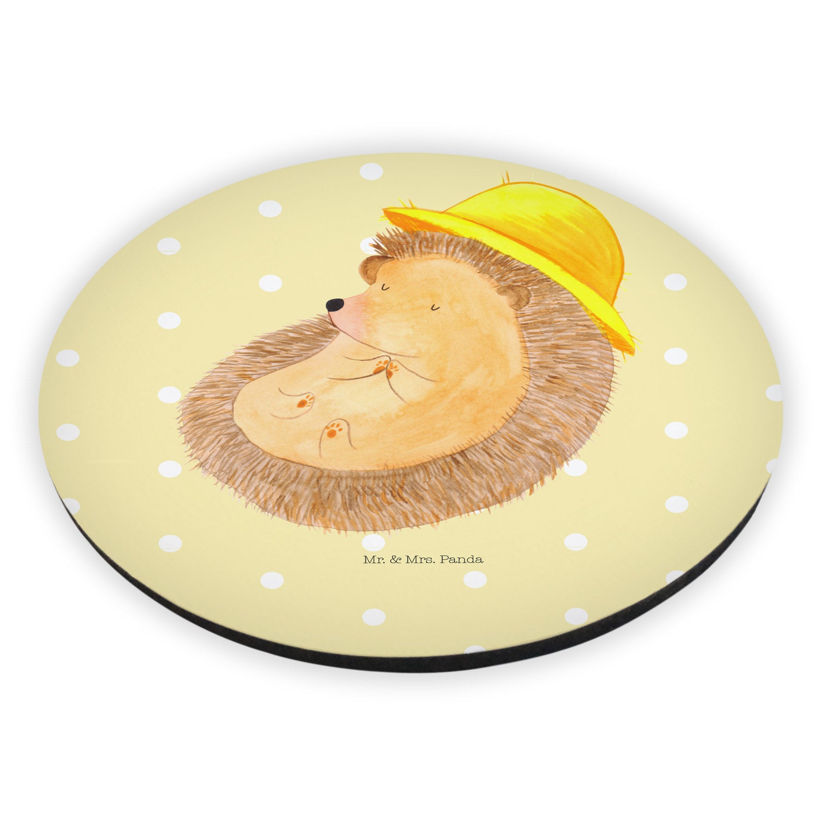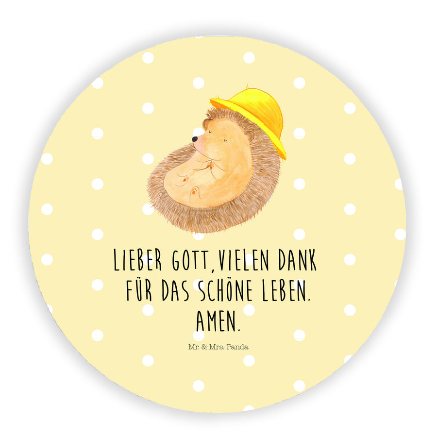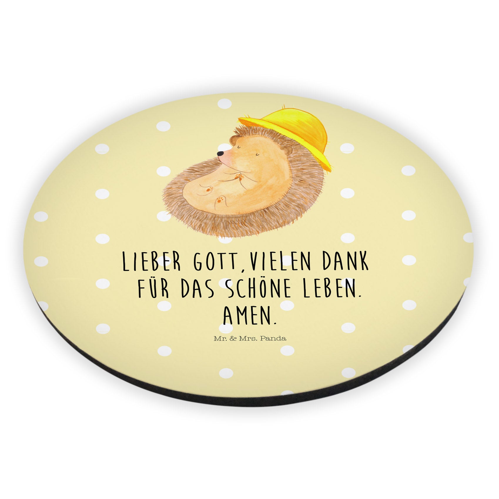 Rund Magnet Igel betet - mit Spruch - Gelb Pastell