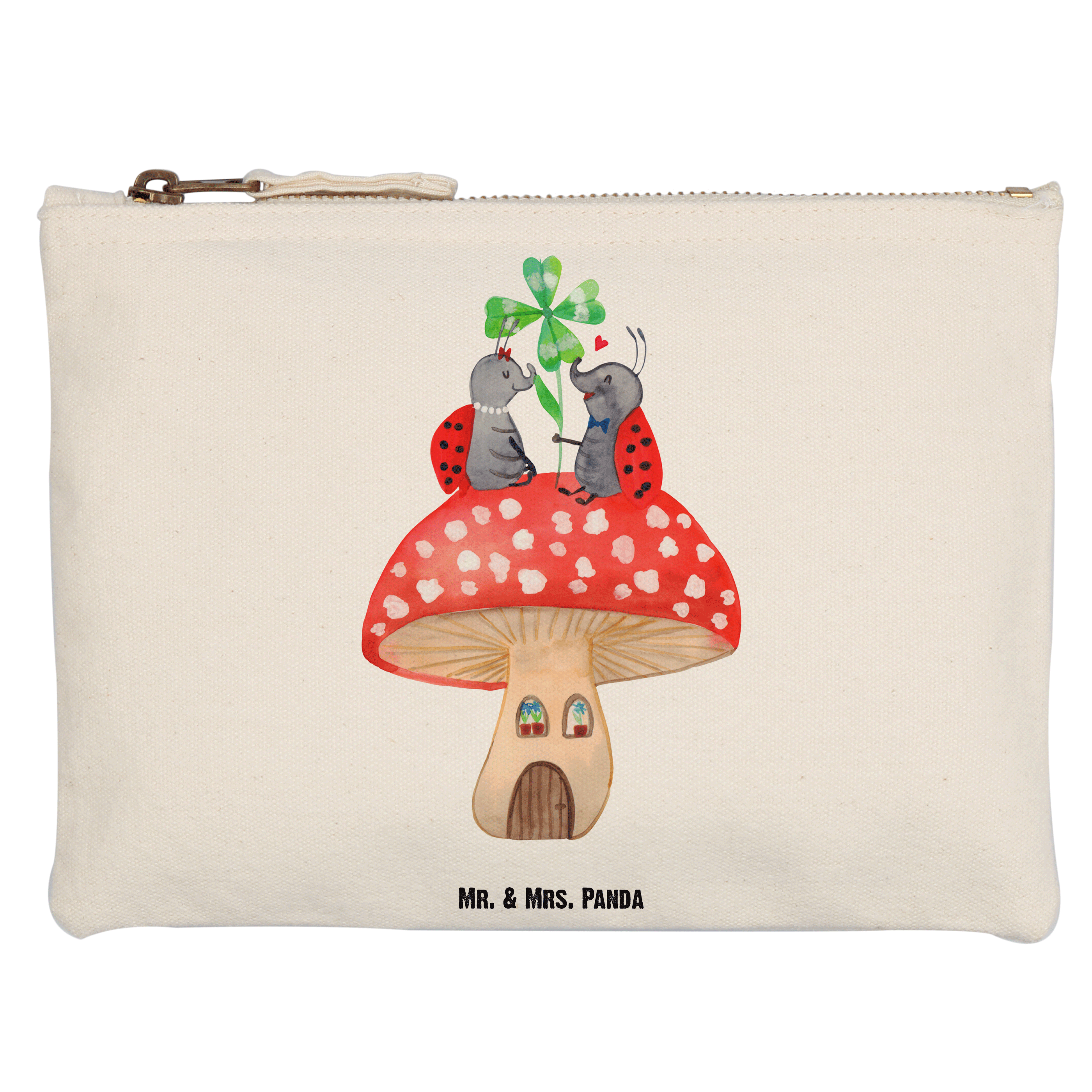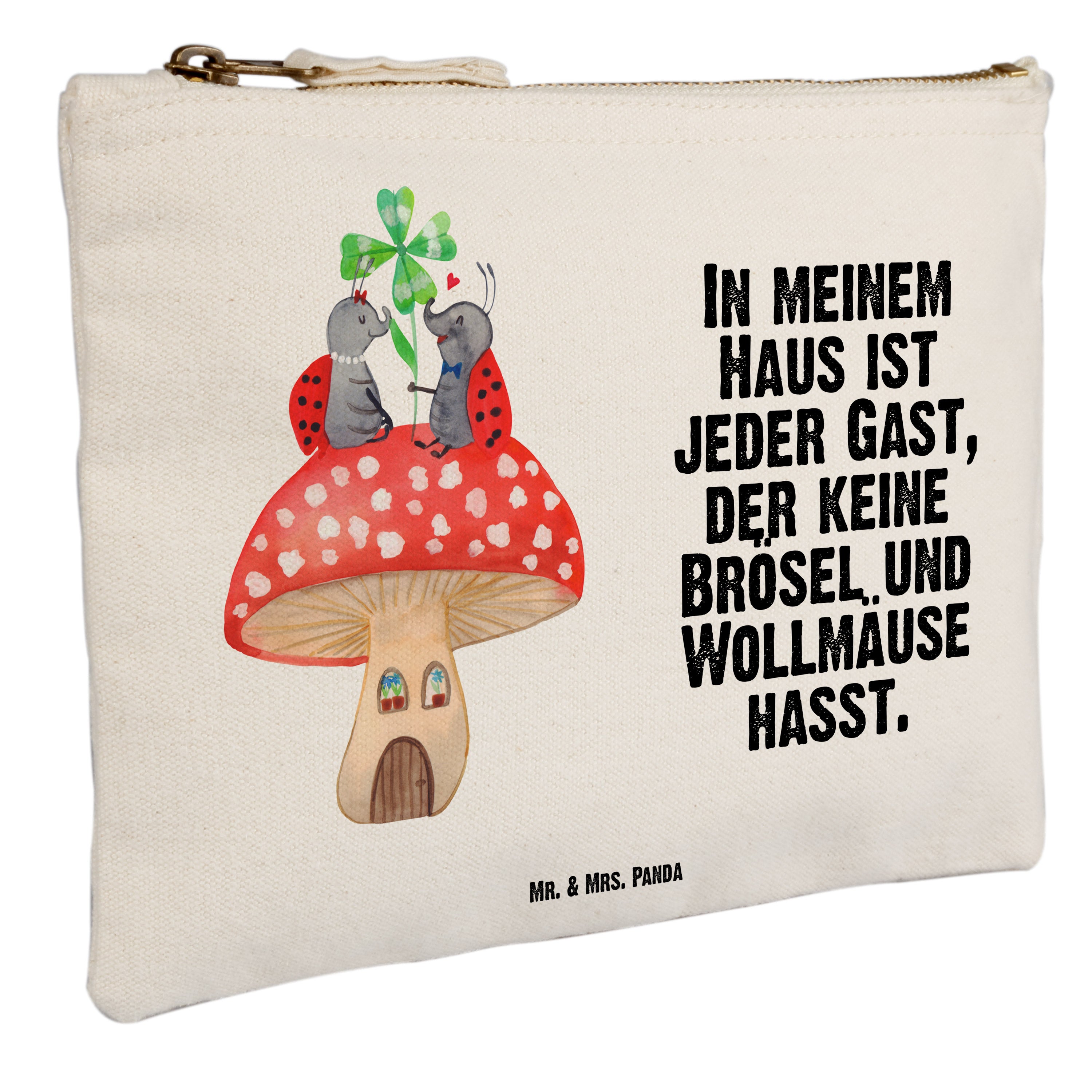Schminktasche Marienkäfer Paar Fliegenpilz - Grösse XL Große - mit Spruch