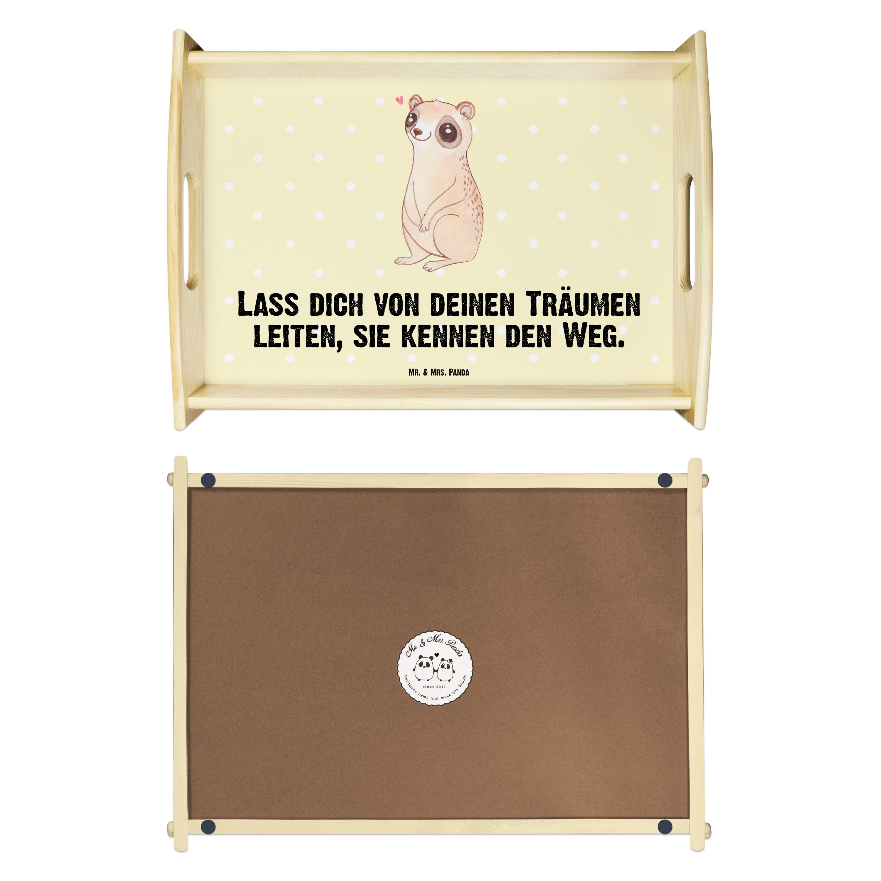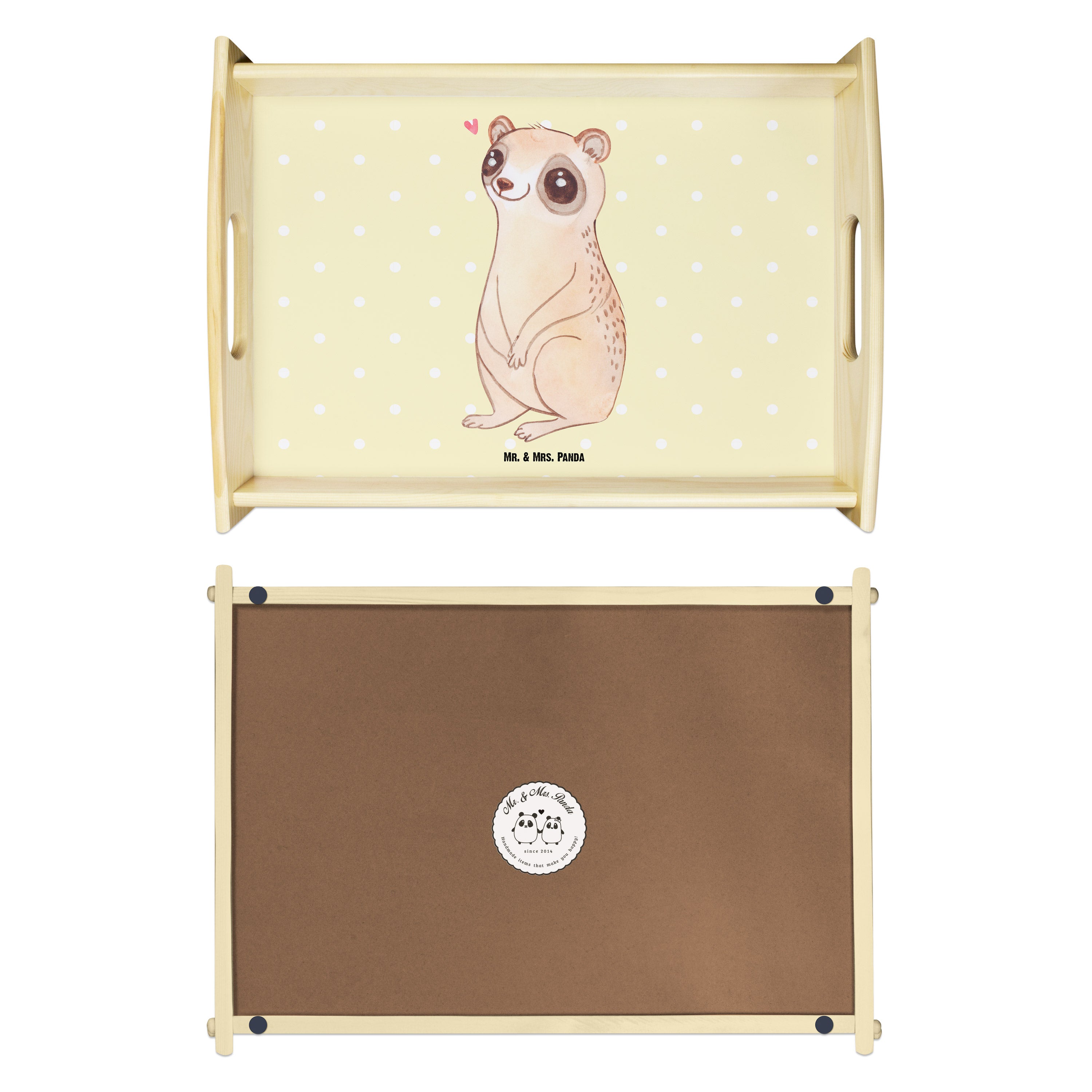 Serviertablett Plumplori Glücklich - mit Spruch - Gelb Pastell