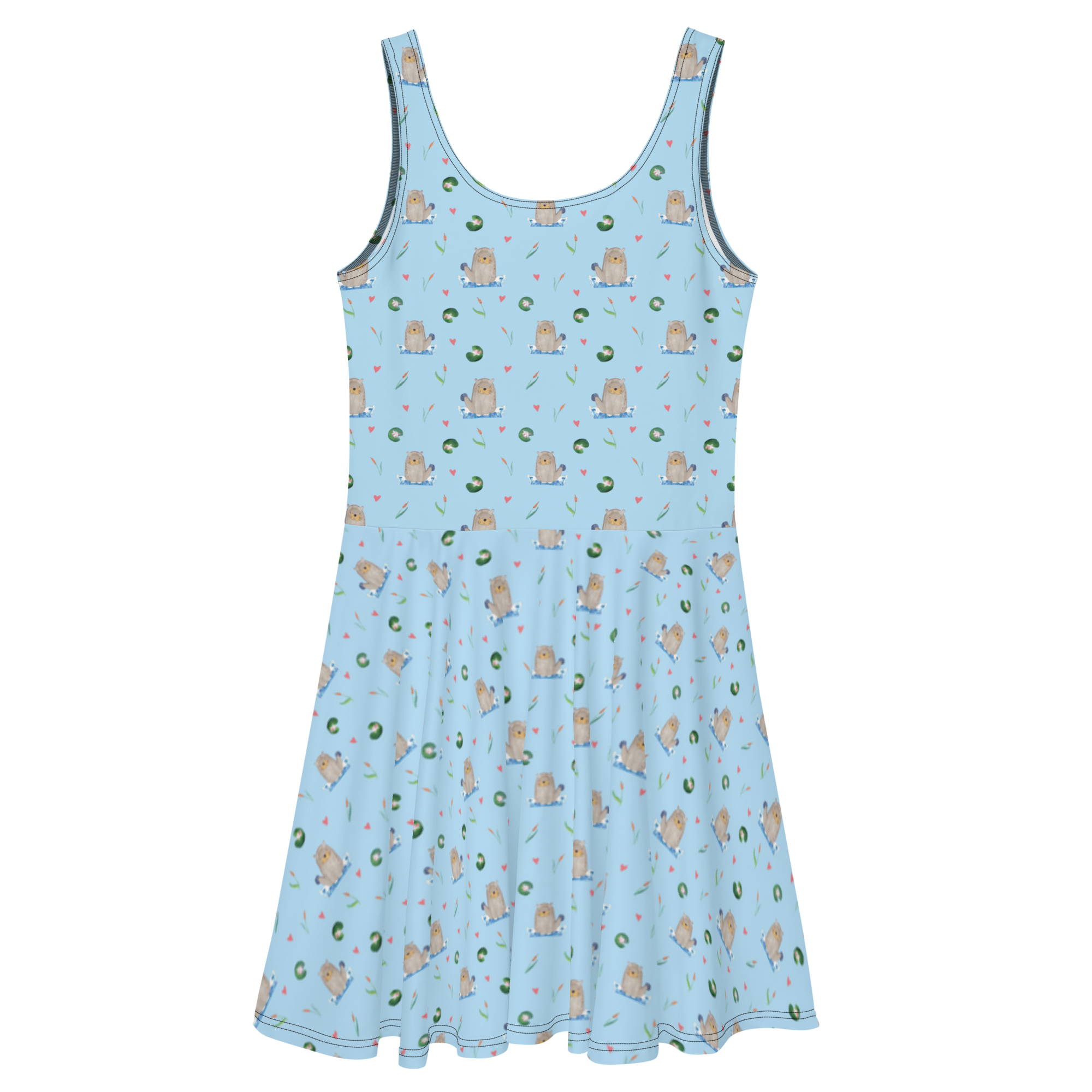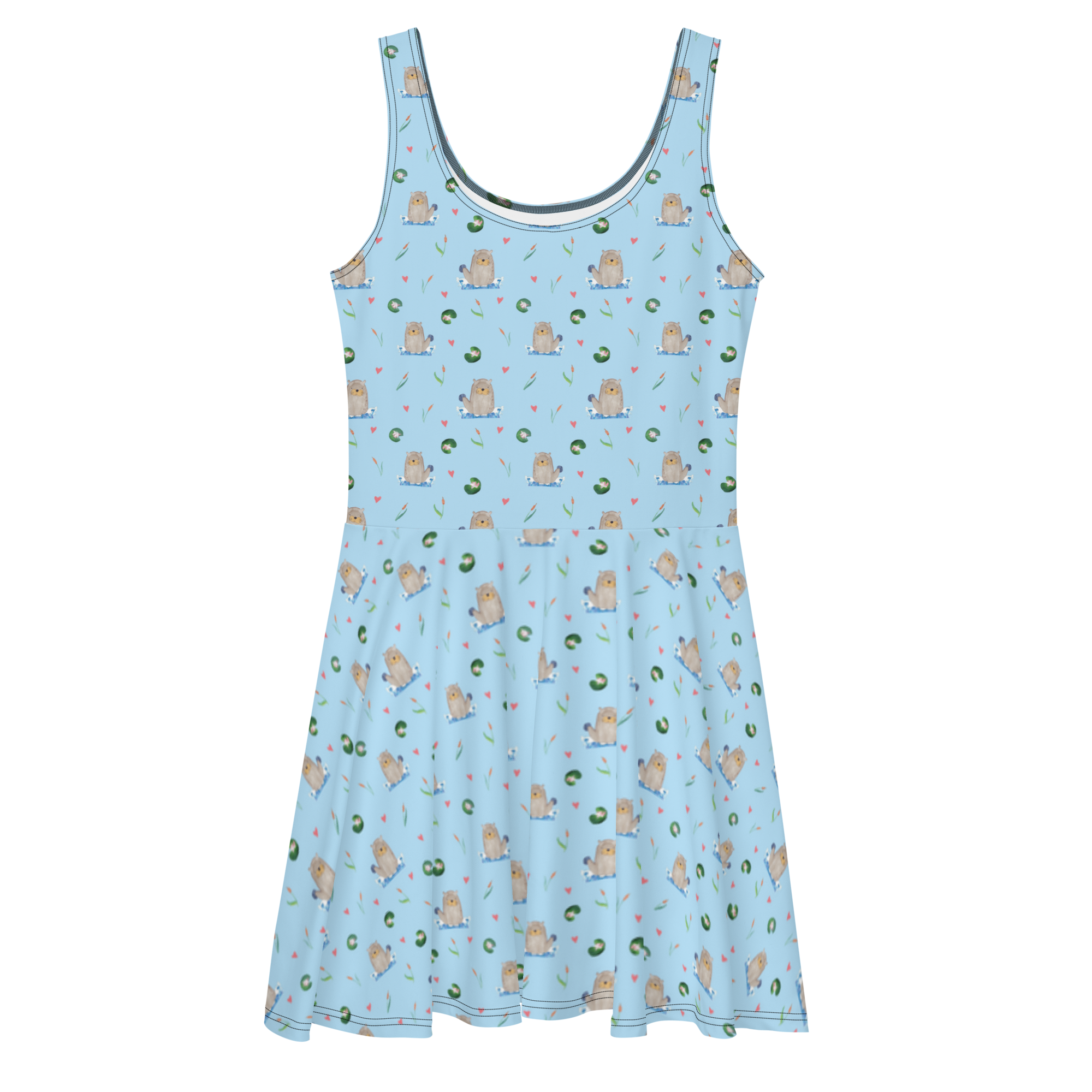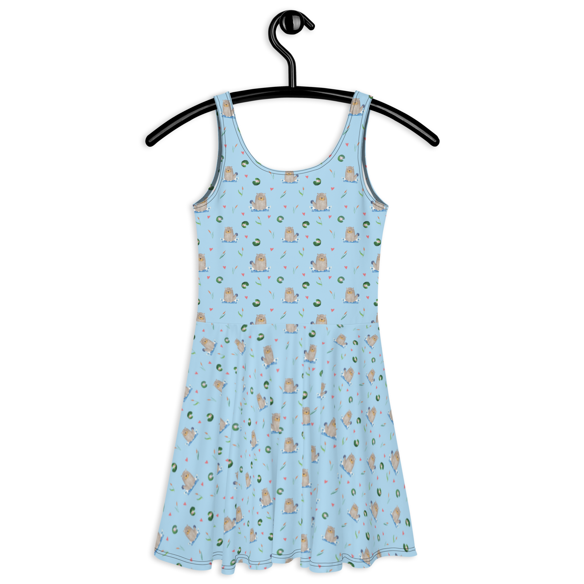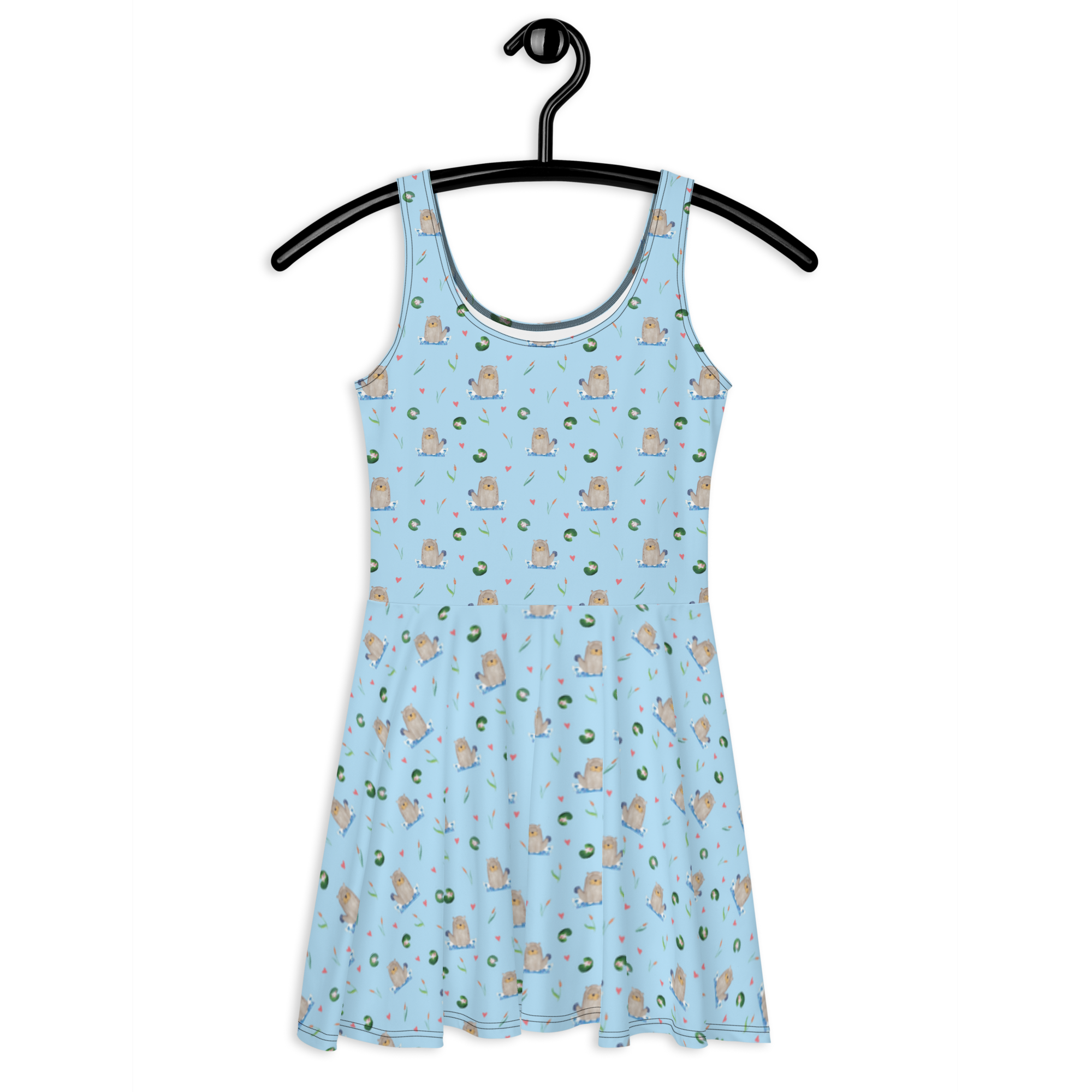 - Das Kleid ist leicht ausgestellt und reicht bis zur Hälfte der Knie.