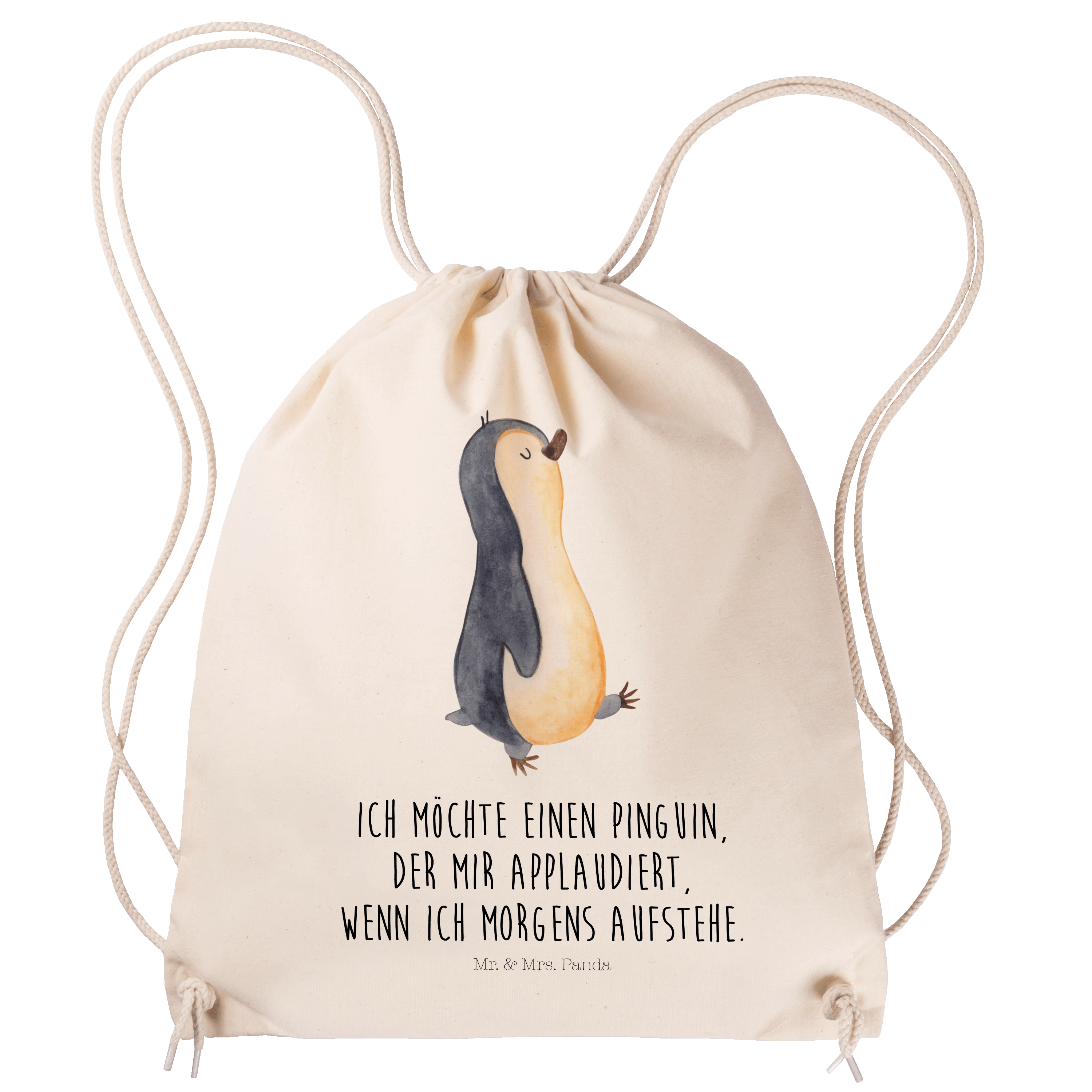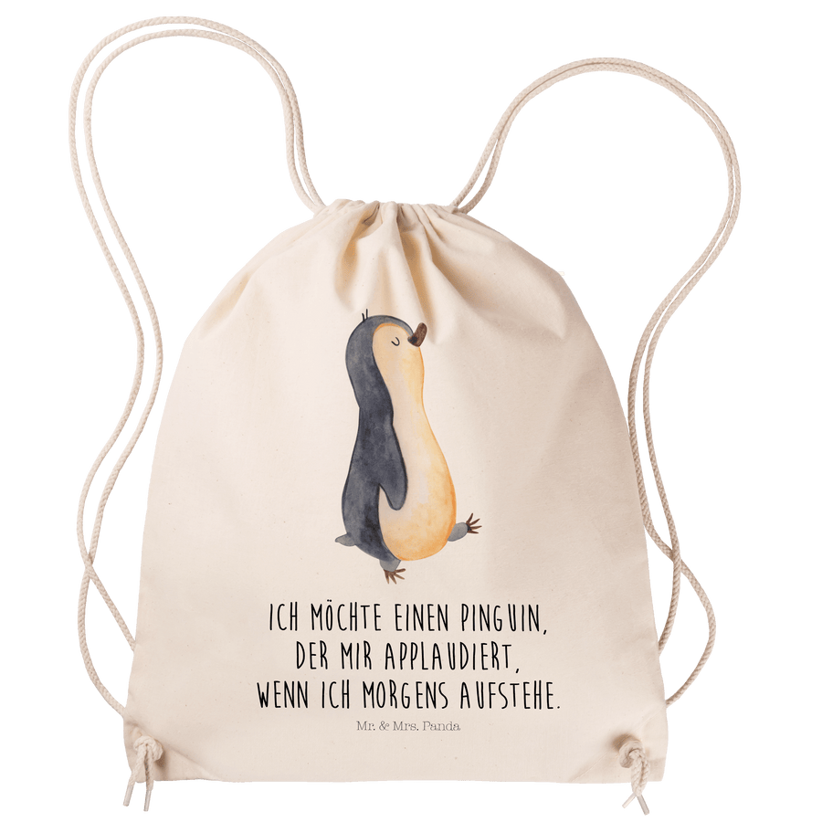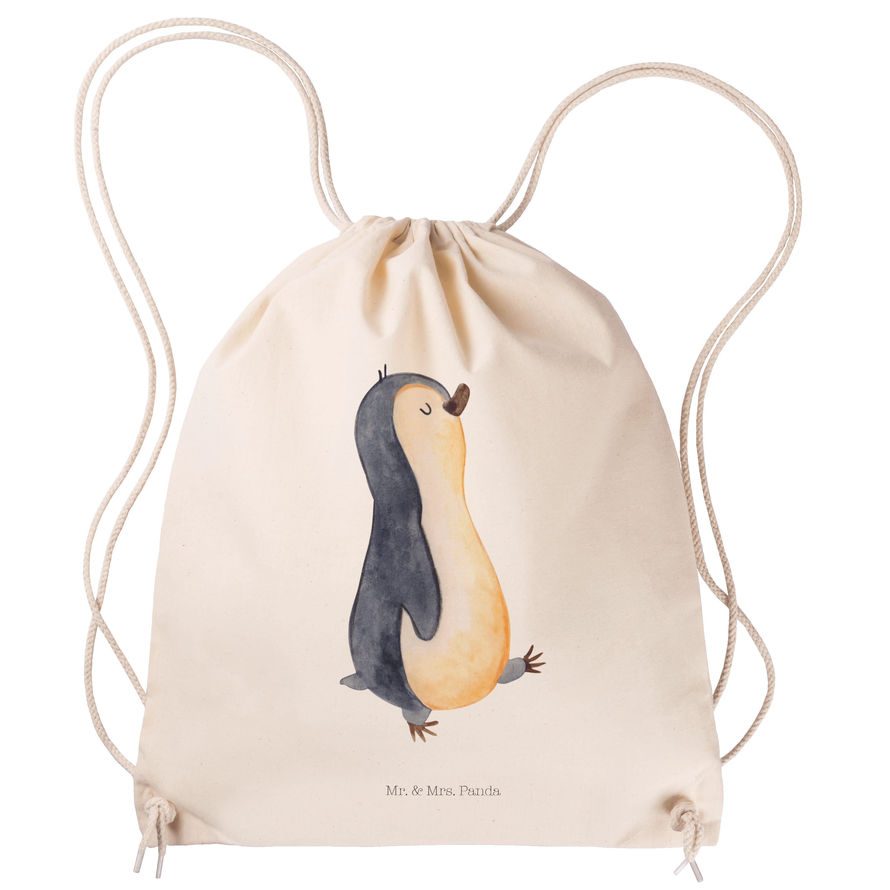 Sportbeutel Pinguin marschierend - mit Spruch - Transparent