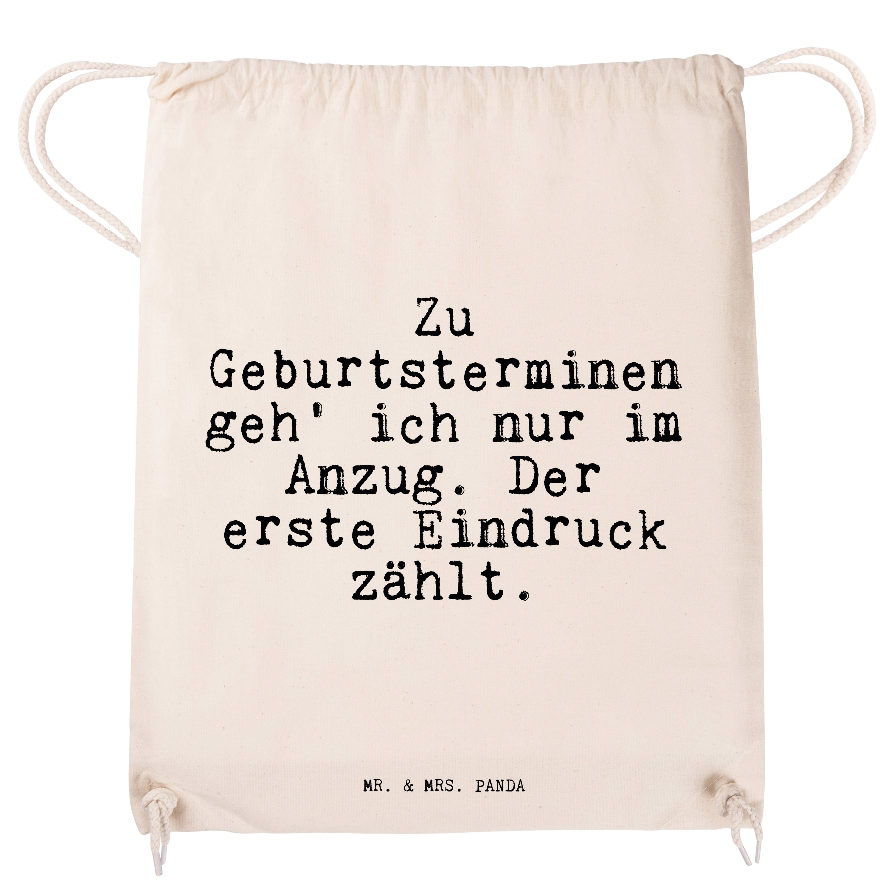 Sportbeutel Sprüche und Zitate Zu Geburtsterminen geh' ich nur im Anzug. Der erste Eindruck zählt. - Transparent
