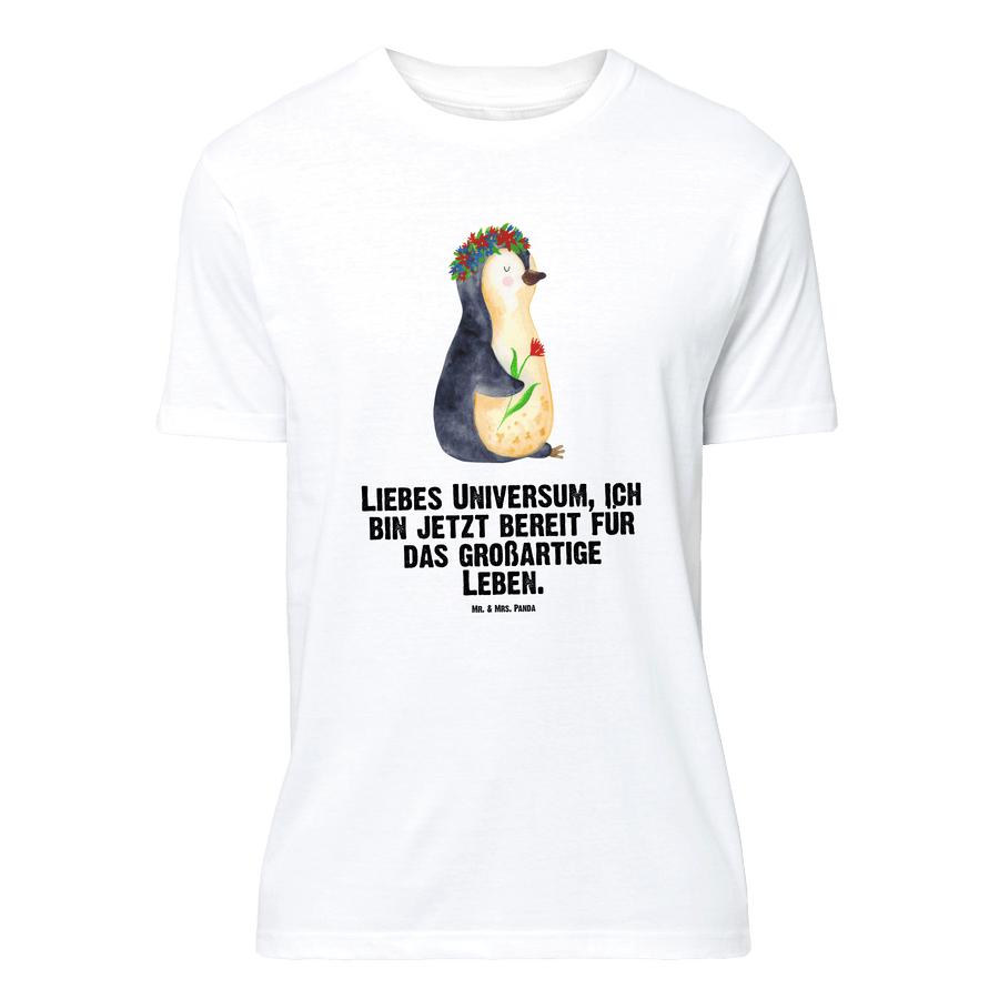 Größe XL T-Shirt Pinguin Blumenkranz - mit Spruch - Weiß