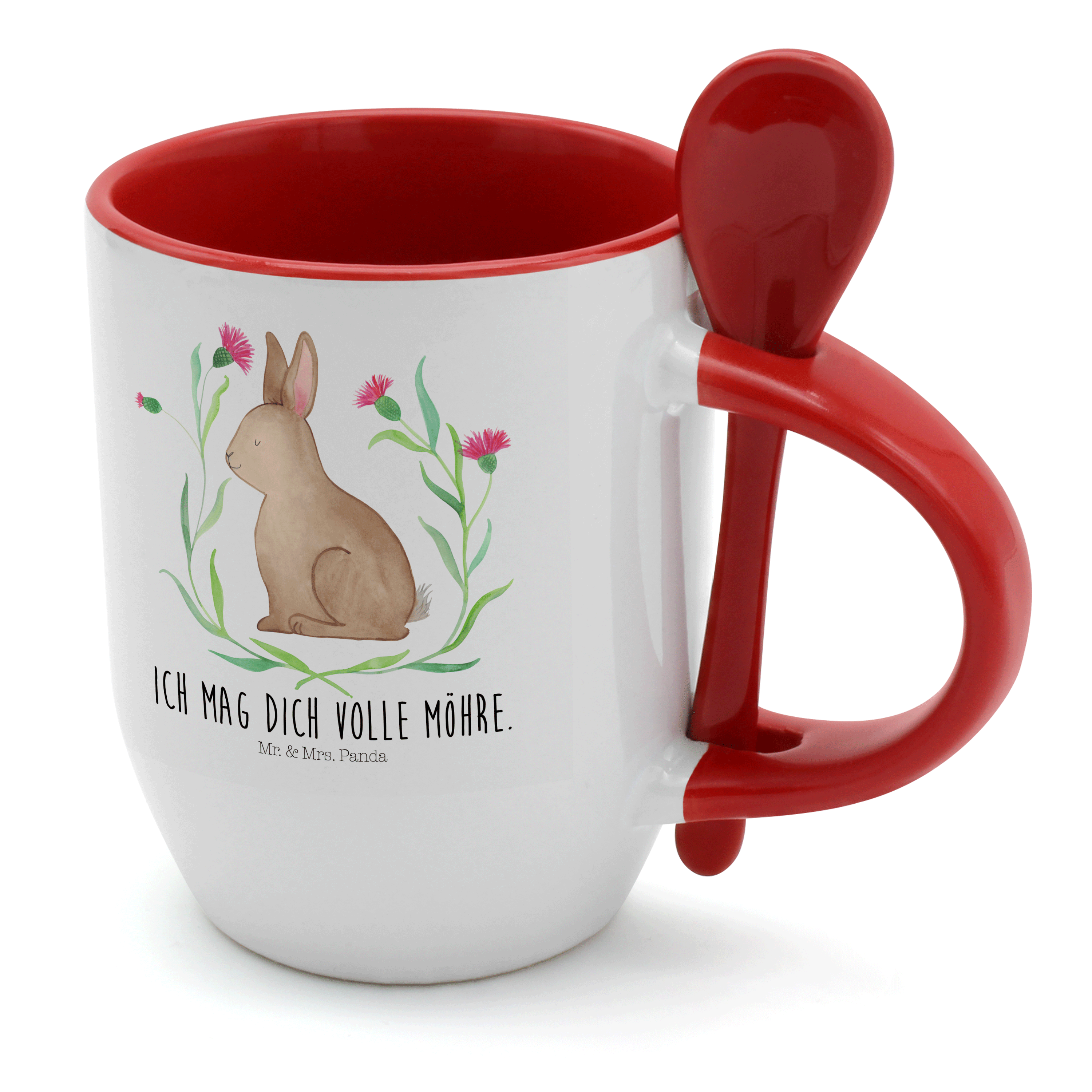 Tasse mit Löffel Hase sitzend - mit Spruch