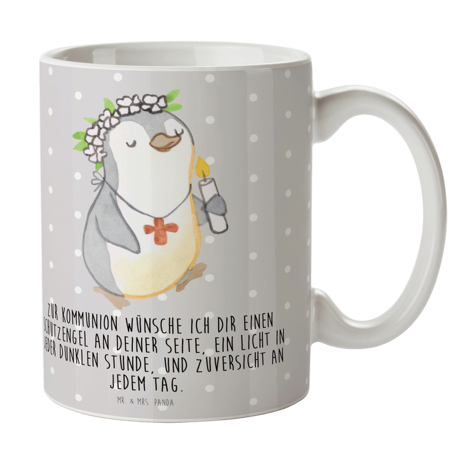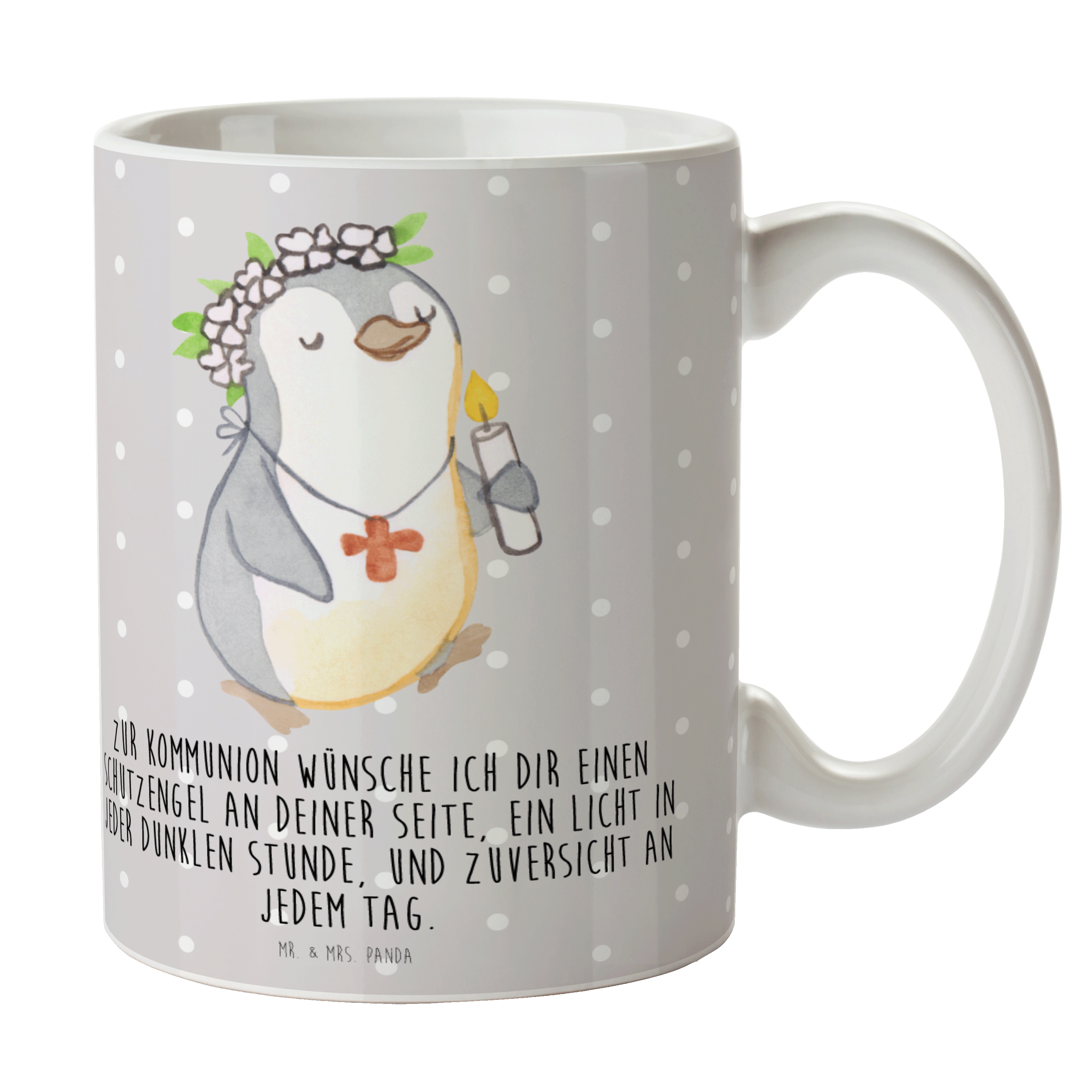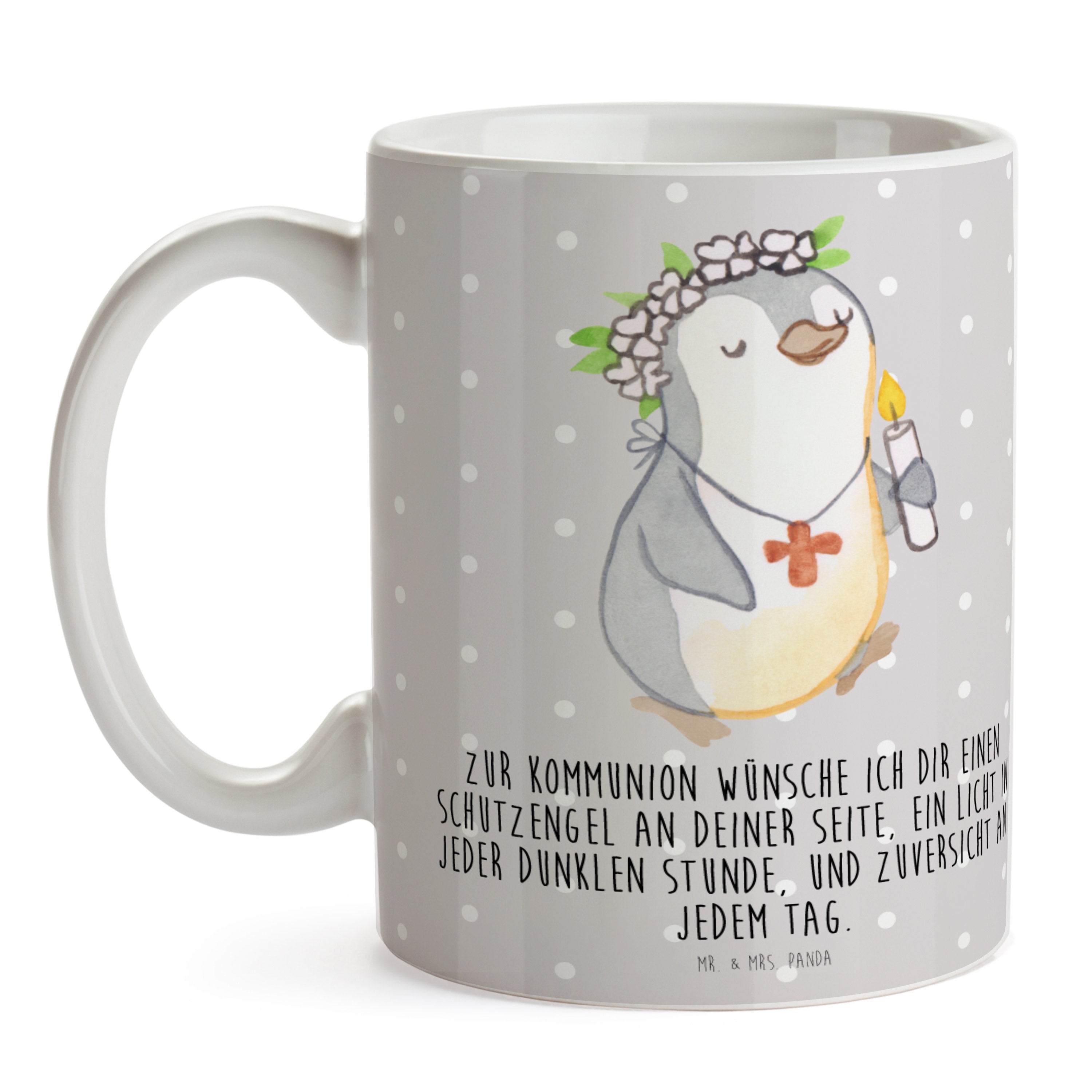 Tasse Pinguin Kommunion Mädchen - Grau Pastell