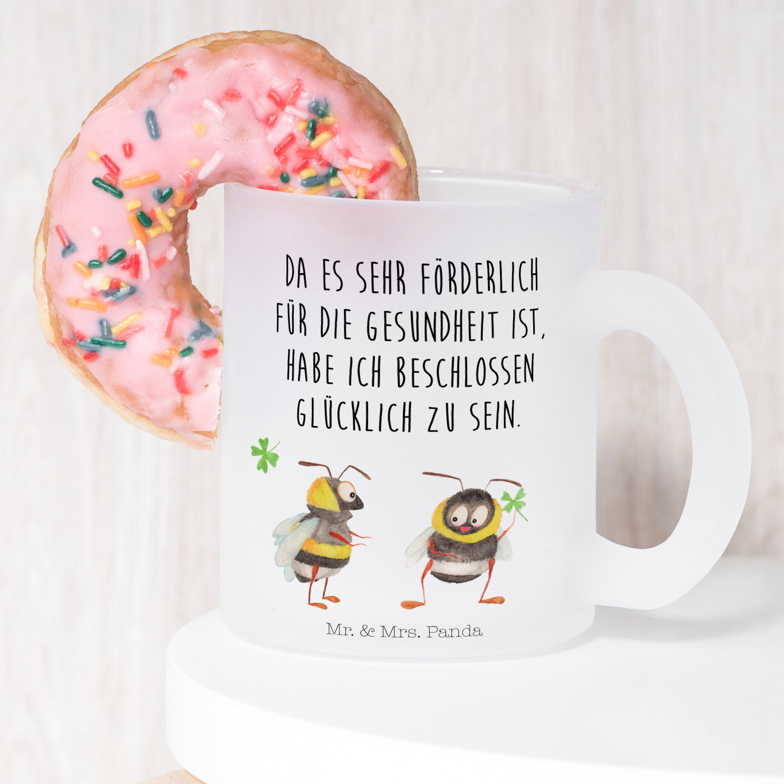 Dieses bezaubernde Motiv von Mr. & Mrs. Panda zeigt zwei süße Hummeln, die sich gegenüberstehen und gemeinsam ein Kleeblatt halten. Es drückt aus, wie glücklich du bist, dass dein Lieblingsmensch an deiner Seite ist - ein Zeichen von Treue und Verbundenheit. Du kannst das Motiv auf einer hochwertigen Leinwand genießen und deinem Zuhause damit eine gemütliche, liebevolle Atmosphäre verleihen.
