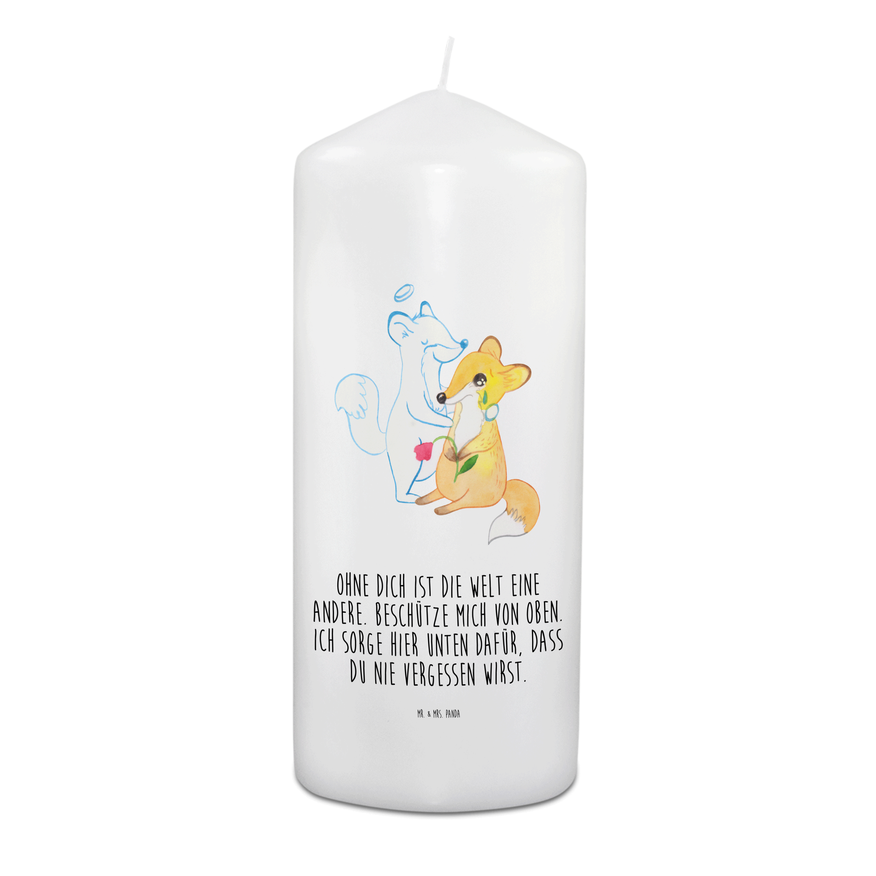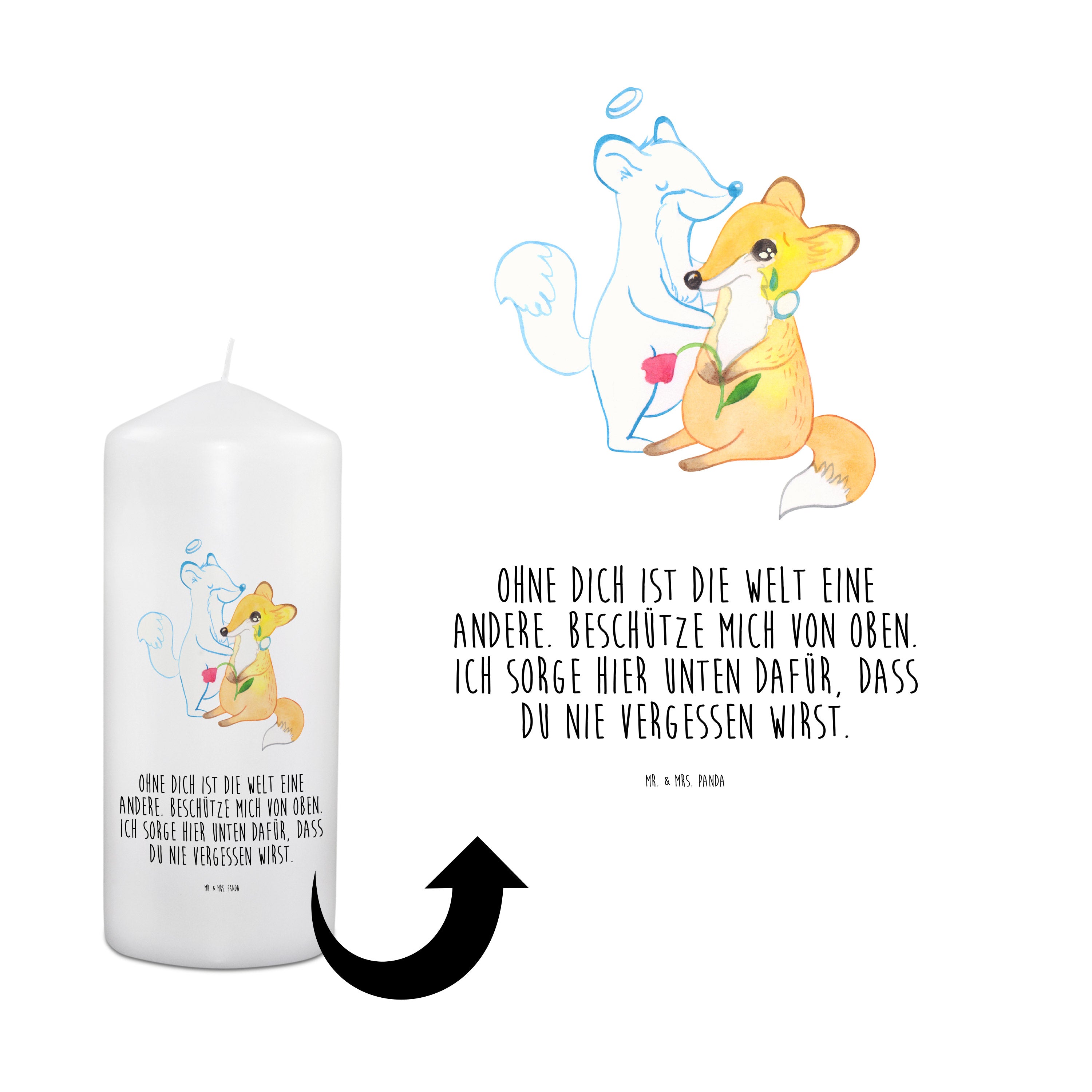 Entzünde dieses Trauerlicht, um den Menschen, der dir fehlt nahe bei dir zu spüren. Mache ein Ritual daraus. Denke über die schönsten Geschichten, die du mit dem Menschen erlebt hast nach, während du der Flamme zuschaust. Und, wer weiß, vielleicht kann man den Kerzenschein dort oben von der Wolke aus sehen....