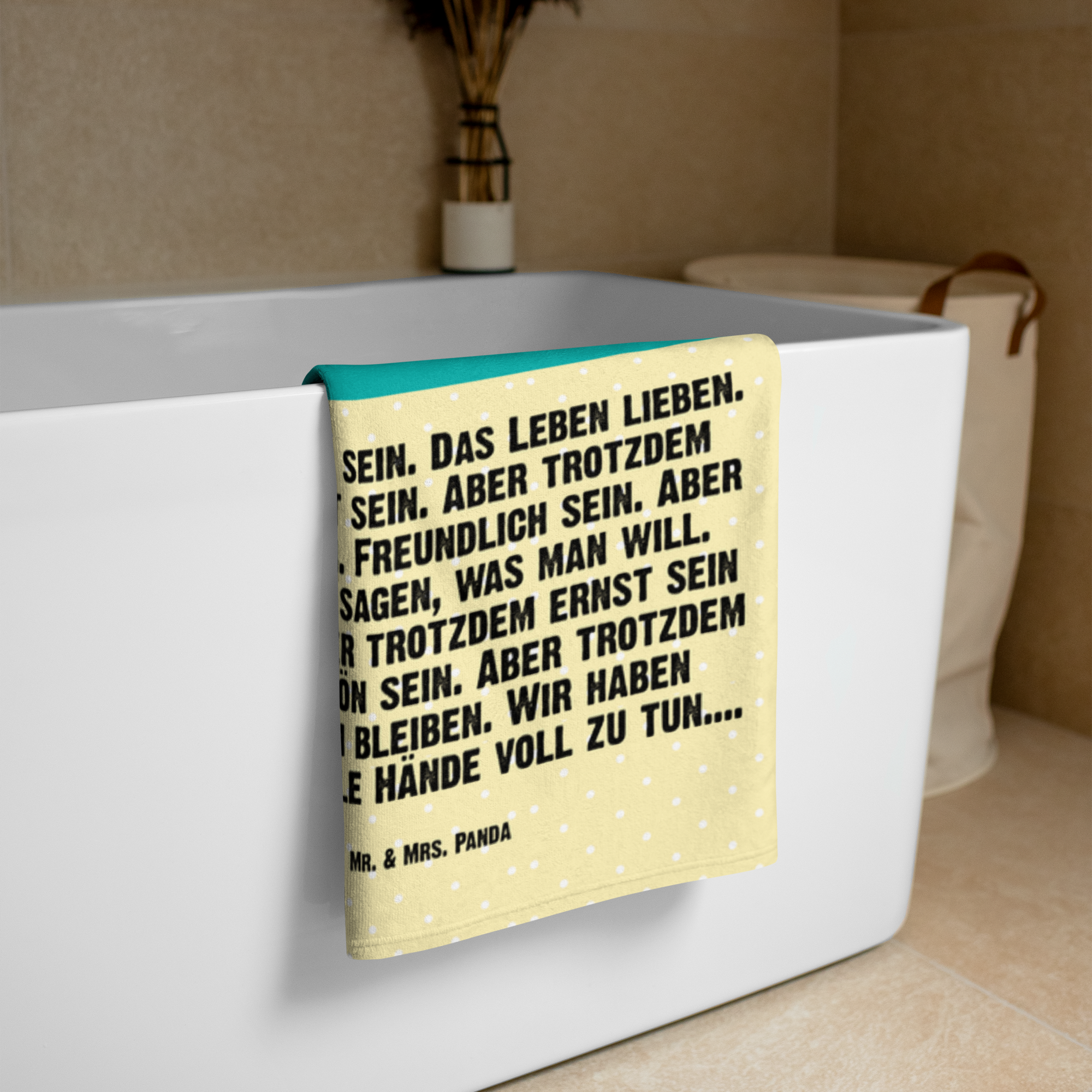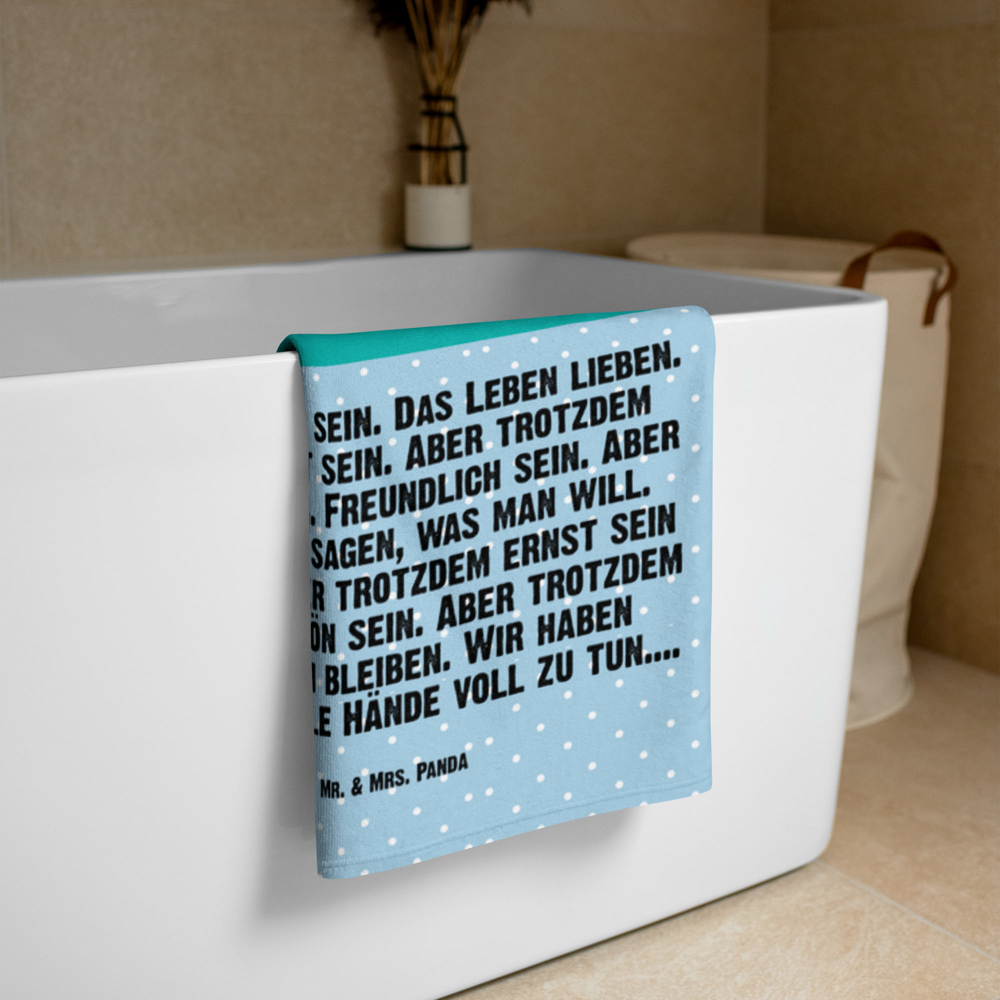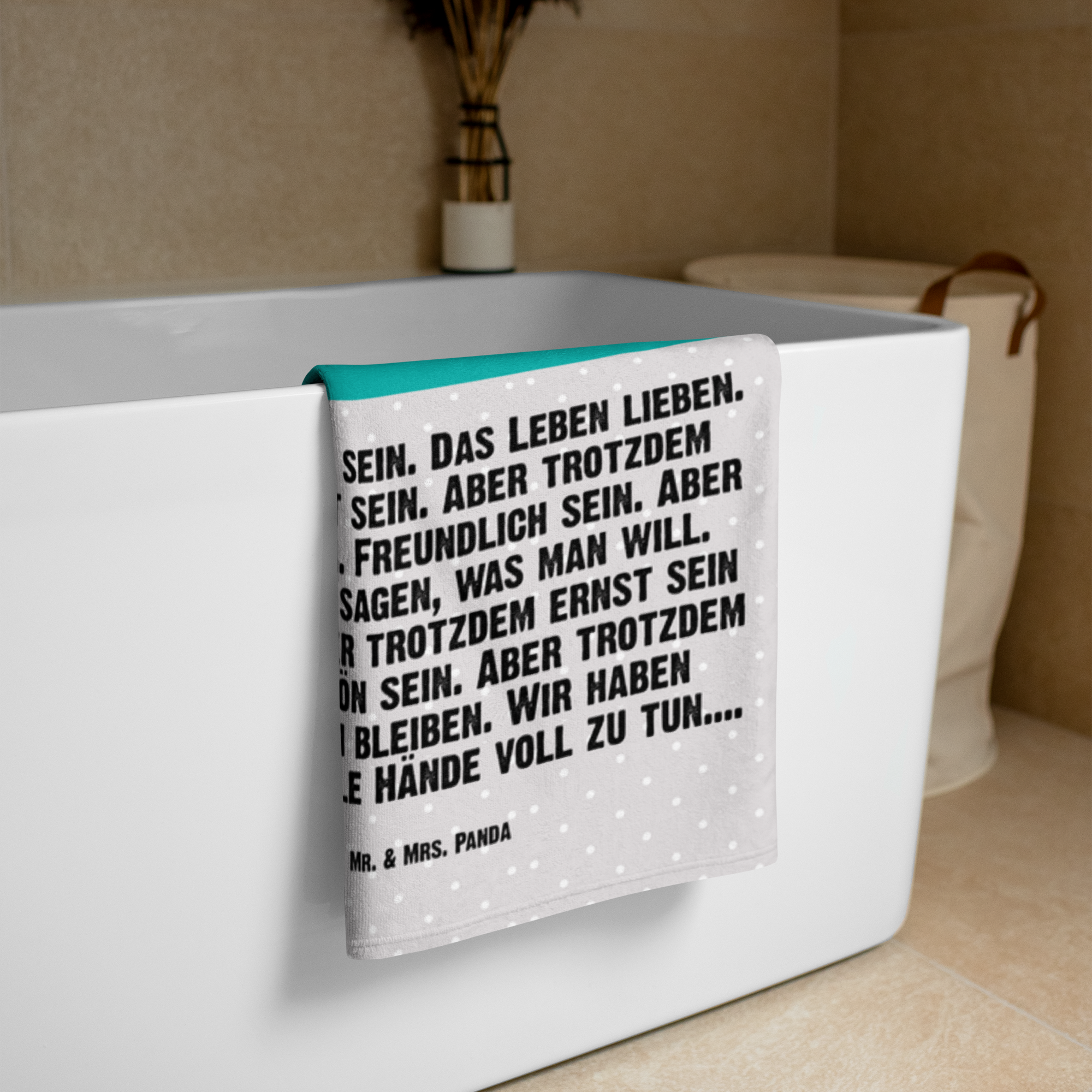 Dein Handtuch kannst du bei maximal 60°C waschen. Der Umwelt zuliebe gilt je niedriger die Temperatur desto besser. Dein Badetuch trocknet in der Sonne schnell allerdings kannst du es, wenn die Sonne mal nicht scheint auch in den Trockner tun.