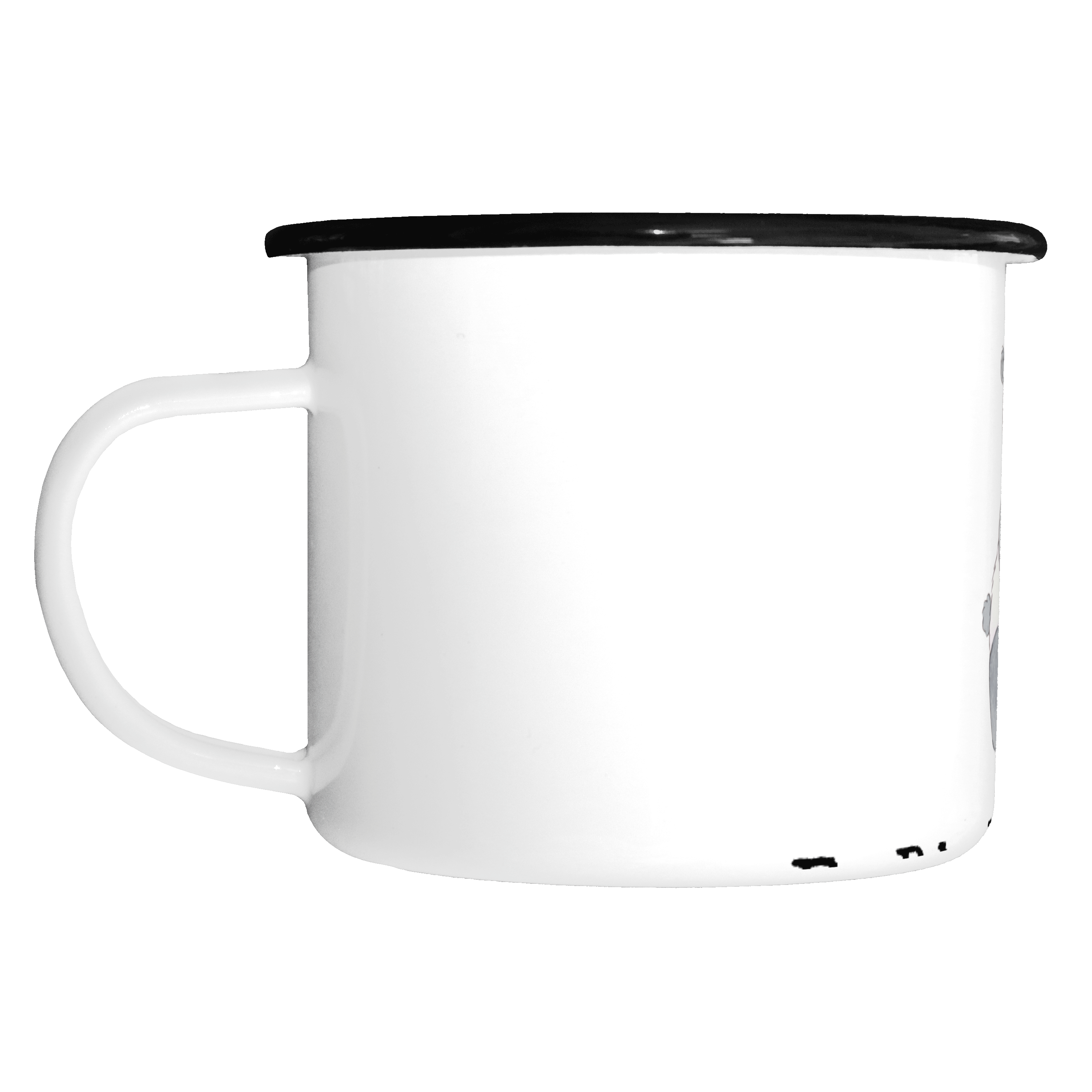 Diese wunderschöne XL Emaille Tasse von Mr. & Mrs. Panda ist wirklich etwas ganz besonders und hat ein extra großes Füllvolumen. Diese Motivtasse mit abgesetztem schwarzem Emaille Rand ist ein bruchsicherer Begleiter für dein nächstes Abenteuer. Das Füllvolumen des Bechers beträgt 480 ml und ist ideal beim Camping als Campingbecher einsetzbar.