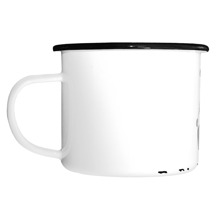 Als Kaffeetasse ist dieser Emailletasse ein echter Hingucker.