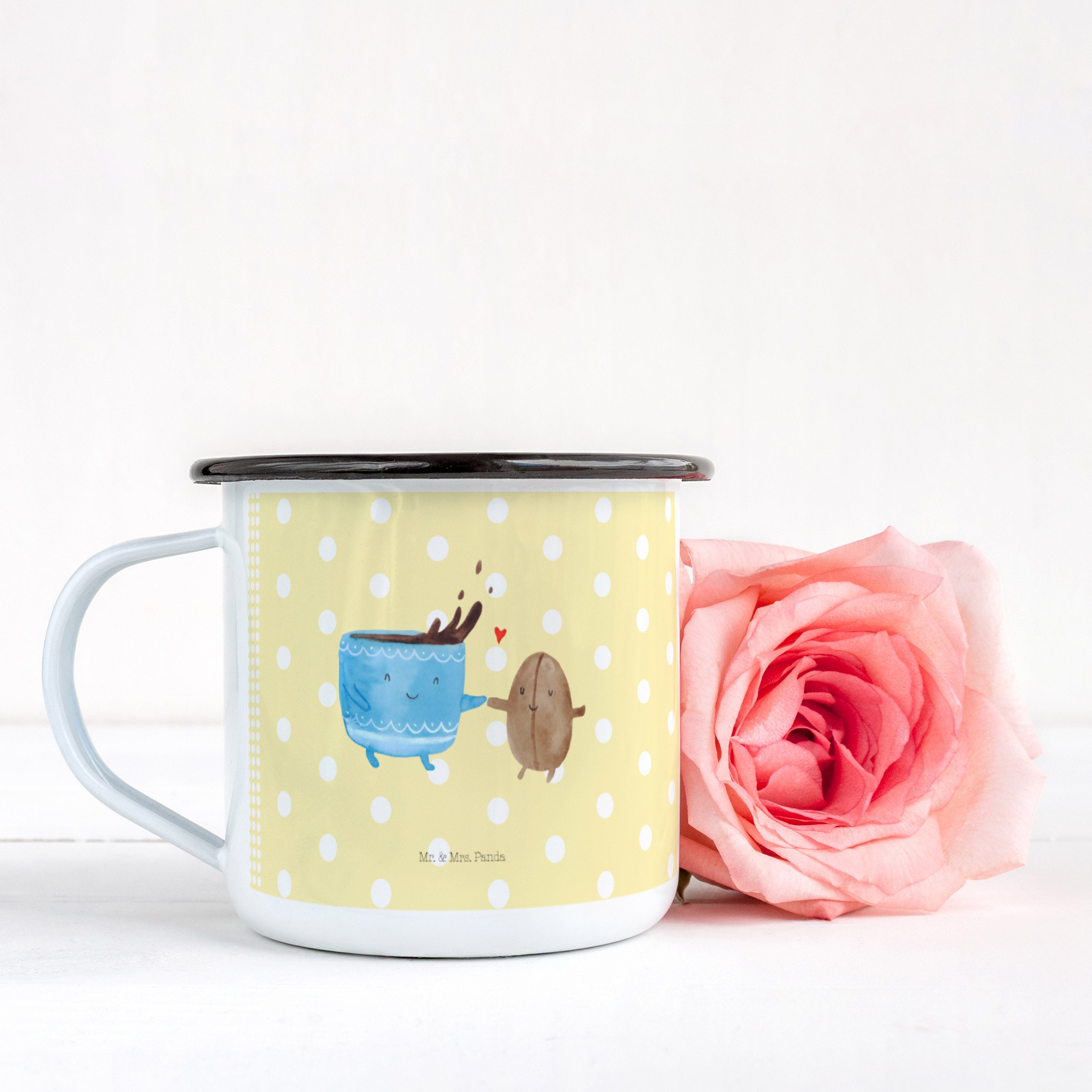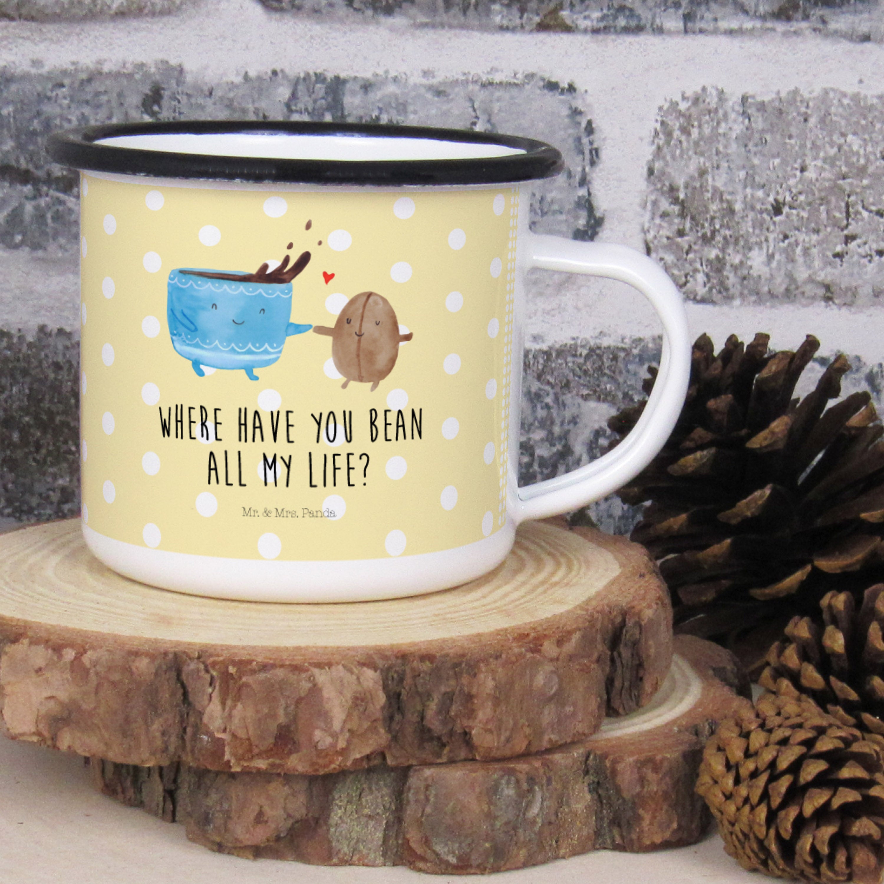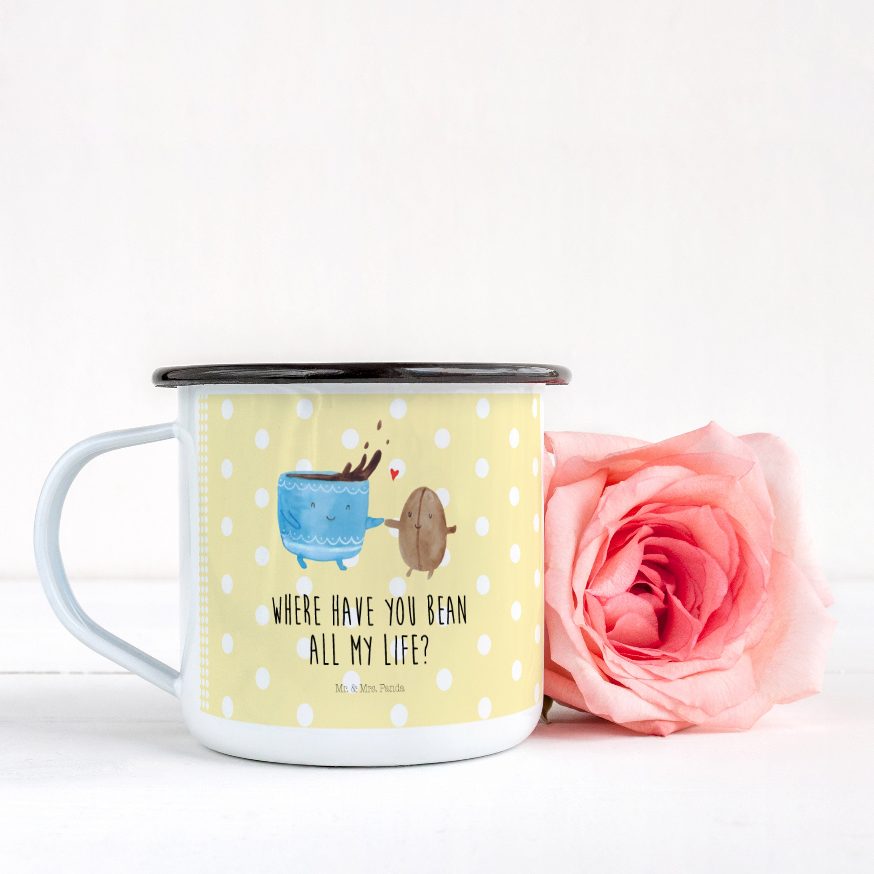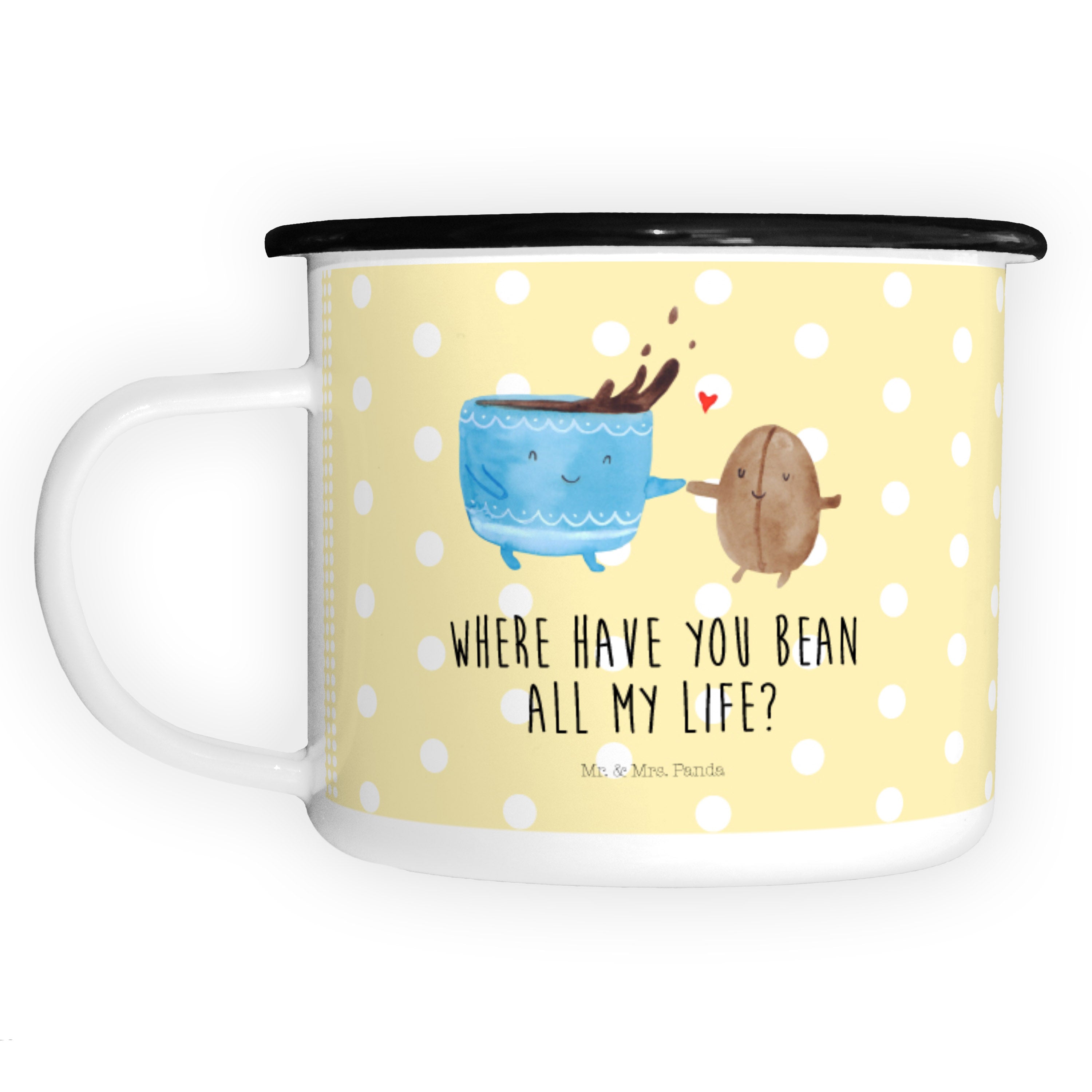 XL Emaille Tasse Kaffee Bohne - mit Spruch - Gelb Pastell