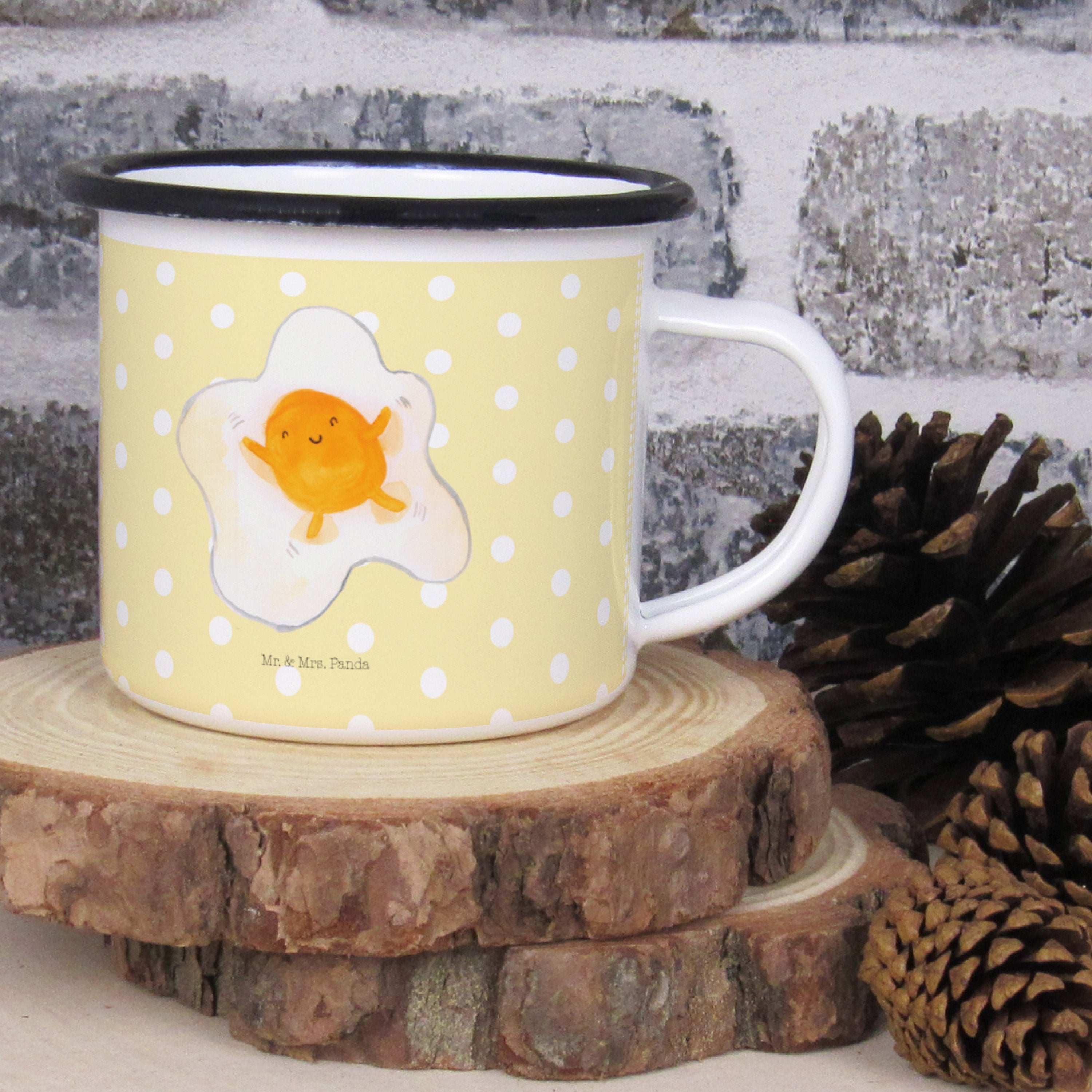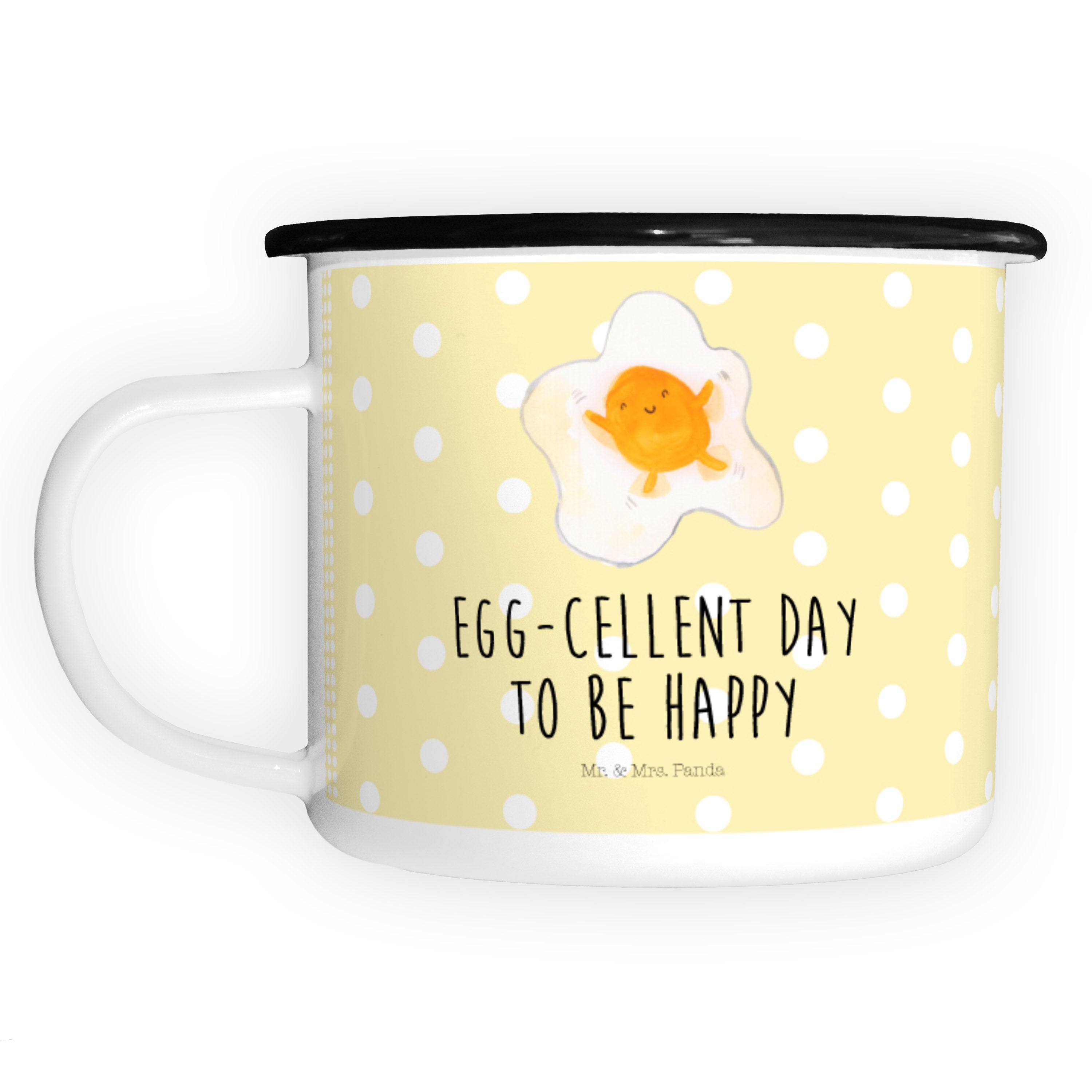 XL Emaille Tasse Spiegelei - mit Spruch - Gelb Pastell